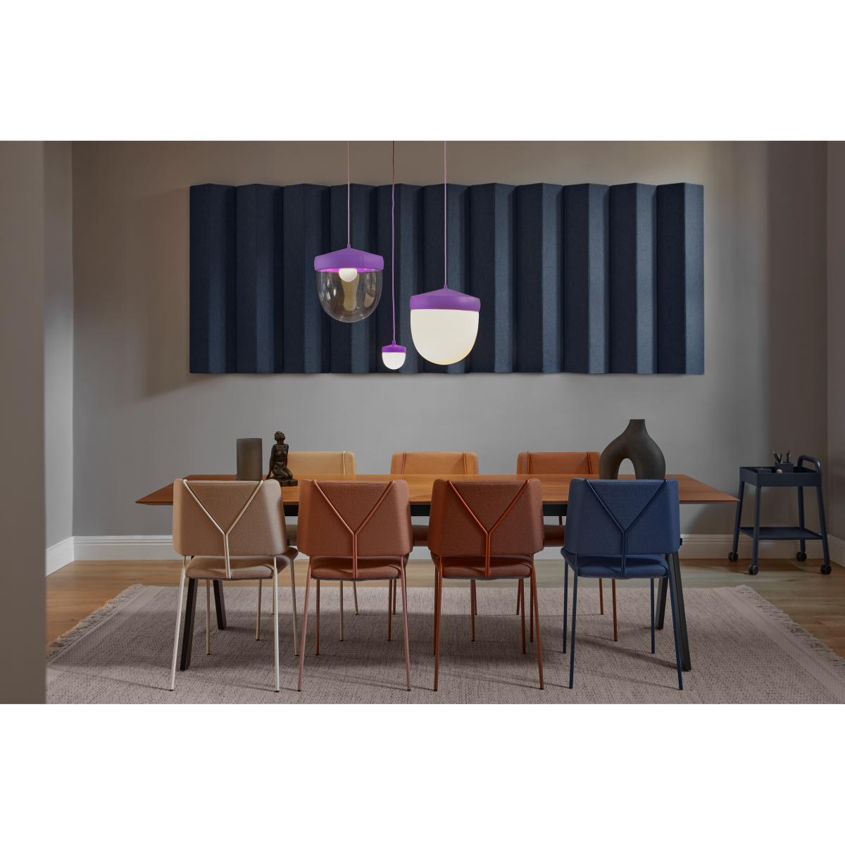 I really like the Noon Pan pendant-its simple yet playful design makes it quite versatile. The purple tone adds a pop of colour without overwhelming a space, making it suitable for both modern and eclectic interiors. It works particularly well in kitchens, breakfast nooks, or children's rooms where a touch of colour and fun is welcome. For styling, consider pairing it with neutral walls to let the colour stand out, and hang a few at different heights in a cluster for a more dynamic look. Practical tip: since the pendant is clear and colourful, it benefits from warm bulbs to enhance the hue, creating a cosy yet lively atmosphere.