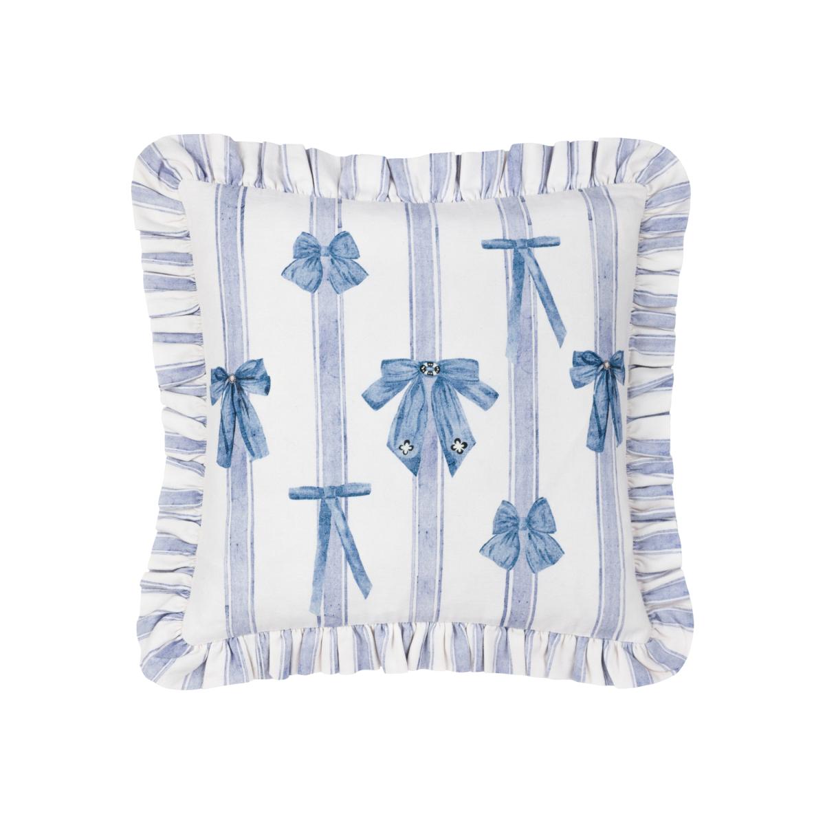The Noortje Ruffle Bows Cushion features a beautiful Parisian stripe and bow design printed onto soft cotton. Complete with a striped reverse for versatile styling and a ruffled frill-trim, this cushion is the epitome of elegance. The perfect accent for any stylish space.
