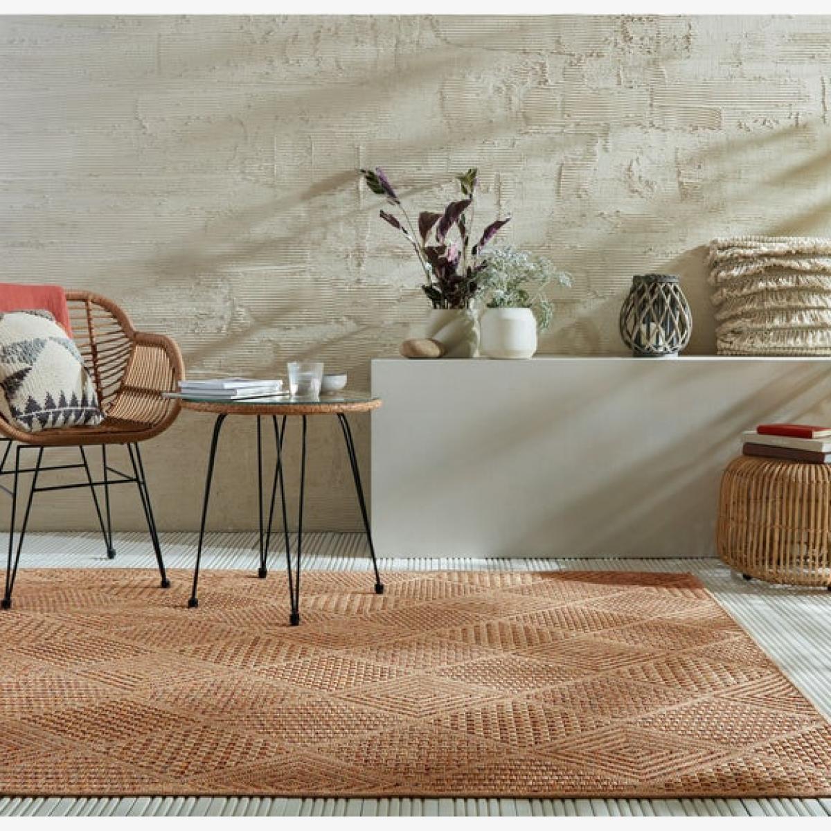 * Jute Look Pile * Indoor and Outdoor Use * Geometric Design Elevate your outdoor space with the Nora Diamond Indoor Outdoor Rug. Crafted from durable 100% polypropylene, this rug offers the timeless appeal of a jute look with the added benefits of being weatherproof and easy to clean — simply rinse with a garden hose! Its intricate woven techniques create a dazzling geometric texture that’s as stylish as it is versatile. The rug pictured is: 160cm x 230cm. Care Instructions: Unroll your rug and leave for 24 hours before use. Maintain your rug by shaking to remove trapped dirt and debris. Outdoor rugs are easy care and can be hose cleaned, for smaller spills blot with a clean cloth and leave to dry. Rotate every few months and bring indoors in adverse weather to prolong the life of your rug. When using this rug indoors add an anti-slip to prevent slipping.