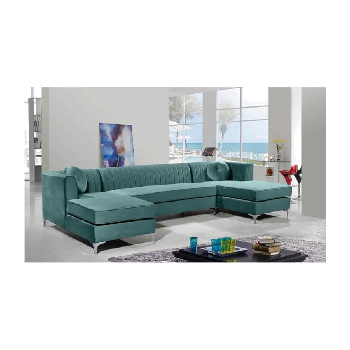 Nora Fixed Back Fluted Large U Shape Sofa - Turquoise