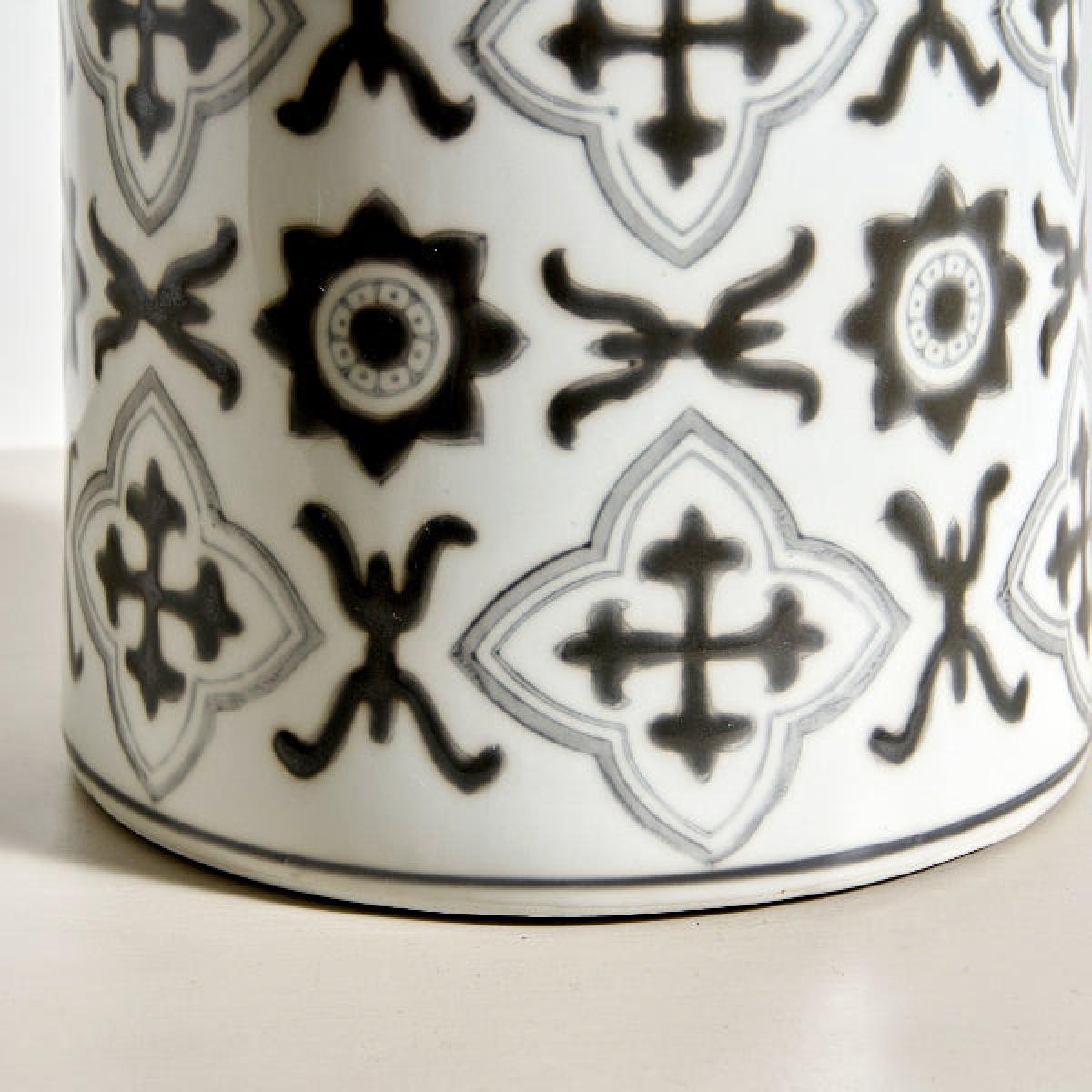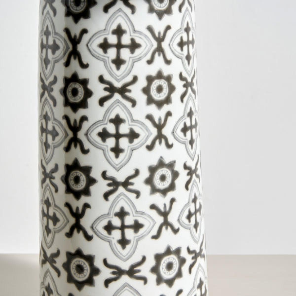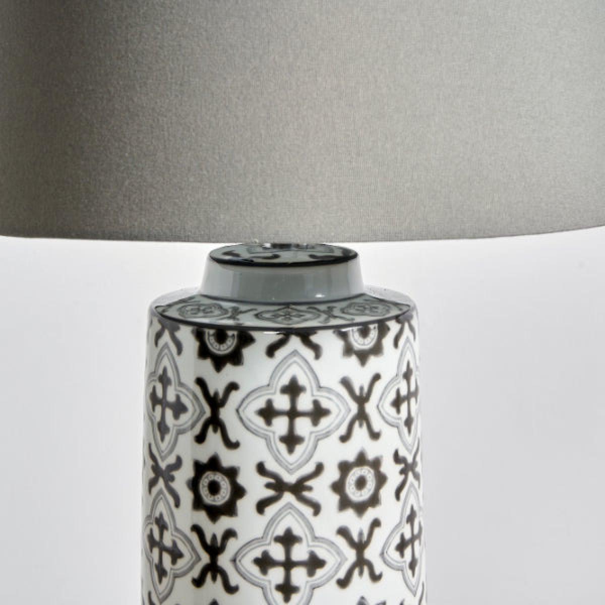 I love this lamp for its versatile design and subtle pattern, making it a great addition for both modern and traditional interiors. The neutral grey & white colour scheme ensures it blends effortlessly into a variety of colour palettes, from monochrome schemes to softer, pastel tones. It works particularly well in living rooms and bedrooms where a relaxed yet stylish touch is needed. Practical styling tip: pair it with textured cushions or throws for a layered look, and position it on side tables or consoles to create a focal point without overwhelming the space. Its classic ceramic base adds a bit of craftsmanship, making it suitable for both minimal and more eclectic settings.