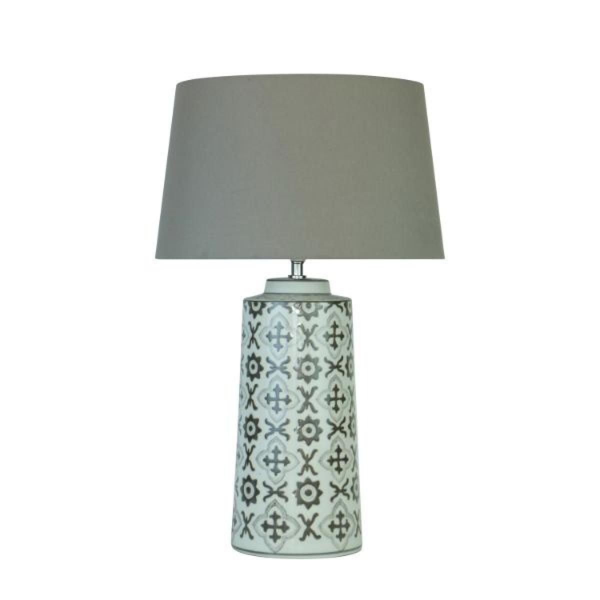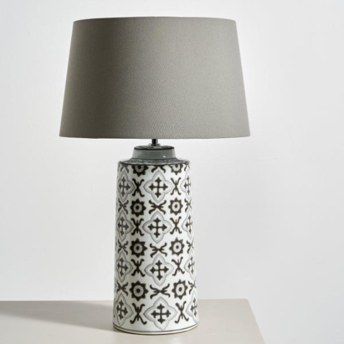Modern table lamp boasting tile design base and circular grey shade The beautiful Nora table features a tile design base and modern cotton circular grey shade. The perfect addition to neutral toned interiors, the table lamp will look perfect in lounges, hallways and bedrooms.   Modern table lamp boasting tile design base and circular grey shade The beautiful Nora table features a tile design base and modern cotton circular grey shade. The perfect addition to neutral toned interiors, the table lamp will look perfect in lounges, hallways and bedrooms.