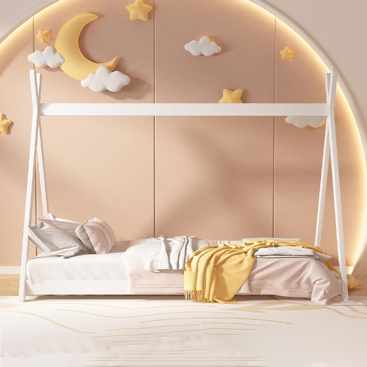 …the young explorer in your life will absolutely love it. The Nora Teepee Bed brings a sense of adventure into your child’s bedroom. This single kid’s bed, although simple, brings with it endless imaginative possibilities for personalising and accessorizing. Low to the ground, you could be camping – throw a bespoke canopy or even an old sheet over the top of the tepee frame and voila – indoor tent! Fairy lights or hanging decorations can be added to create a unique sleeping space. Low beds are encouraged in Montessori teaching as they allow children to own their space and explore freely, so choose one of our super comfy mattresses and create the perfect learn, rest and play space for your child.