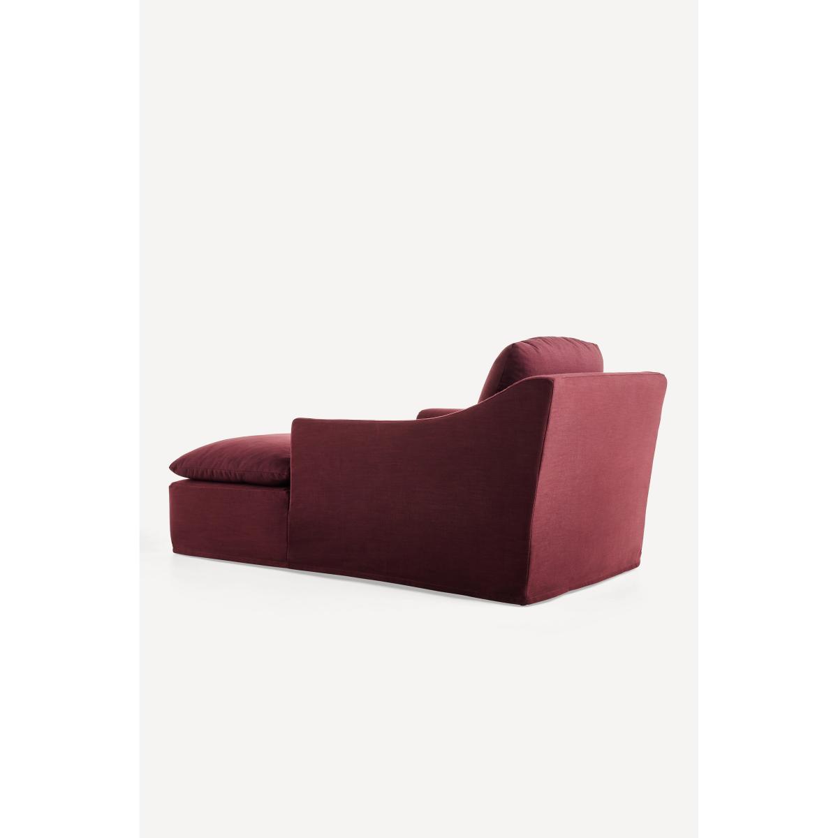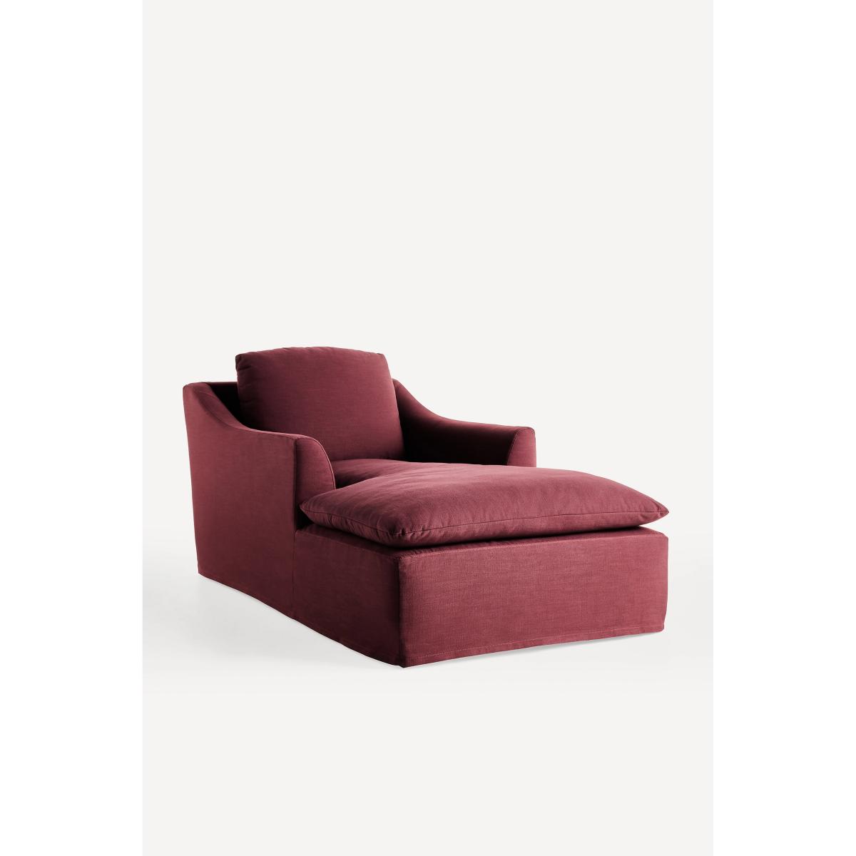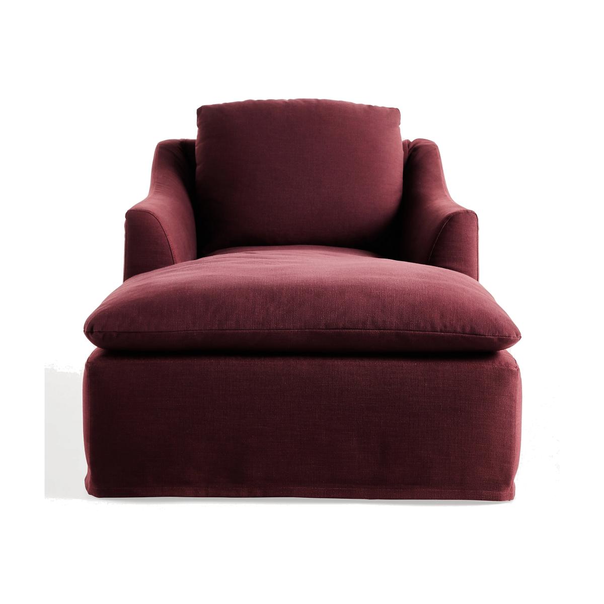 Tastefully designed for both lounging and occasional seating, this chaise features plush, removable cushions, tapered arms, and a skirted base. * Montauk performance linen upholstery: 93% polyester, 8% linen * Cushion content: foam & fiber * One seat and one back cushion * Cushions are removable * Sinuous spring seat construction * Kiln-dried hardwood frame * Turned legs * Professionally clean * This piece is intended for indoor use * No assembly required * Imported