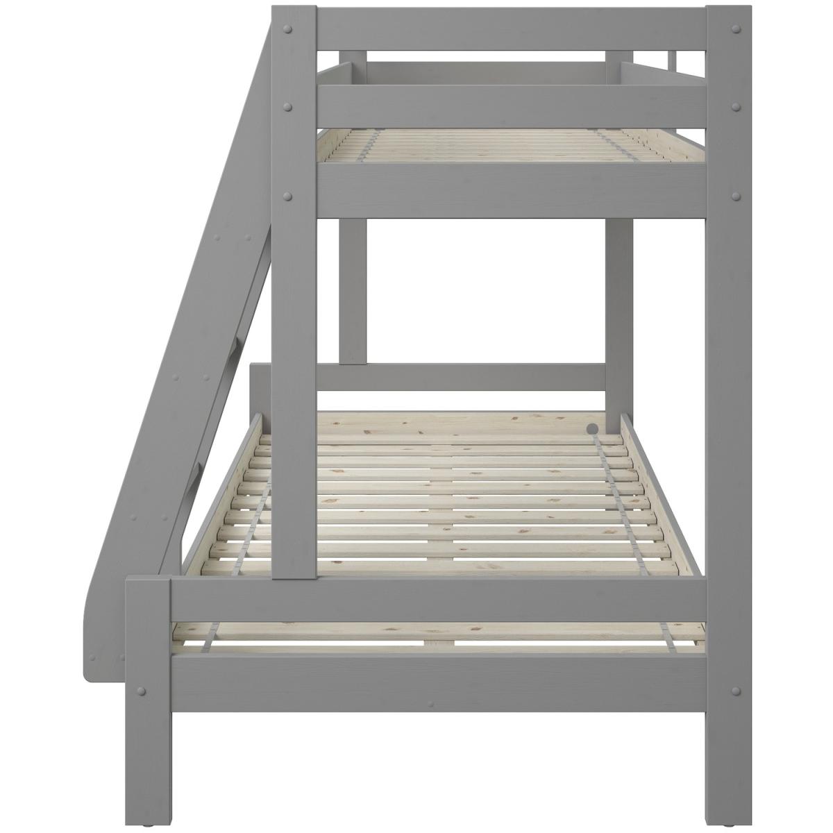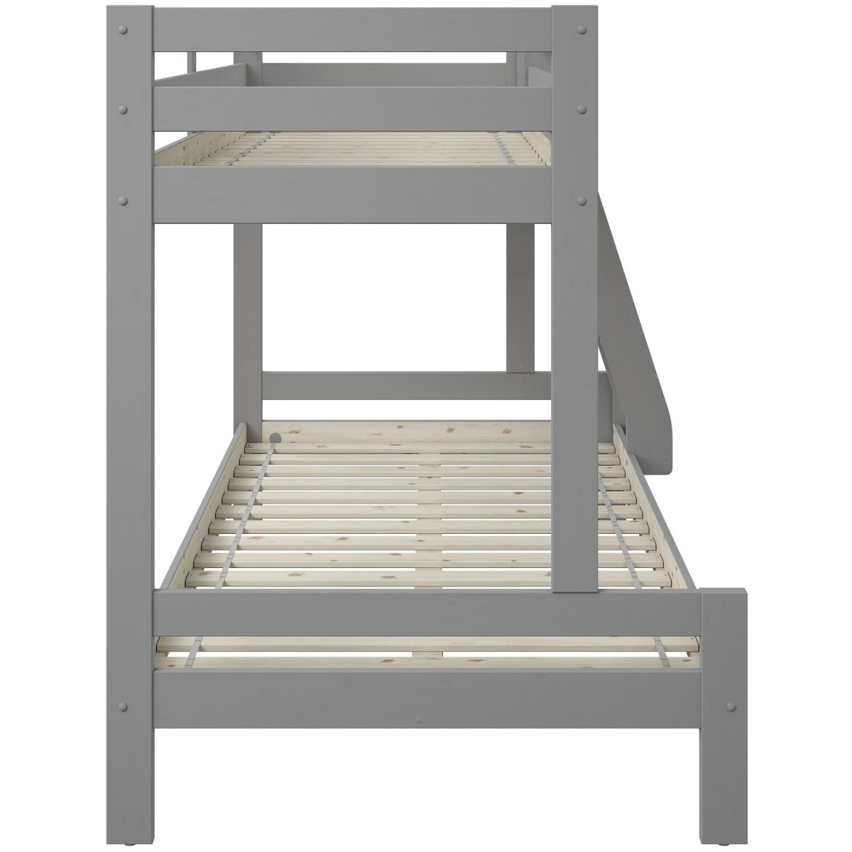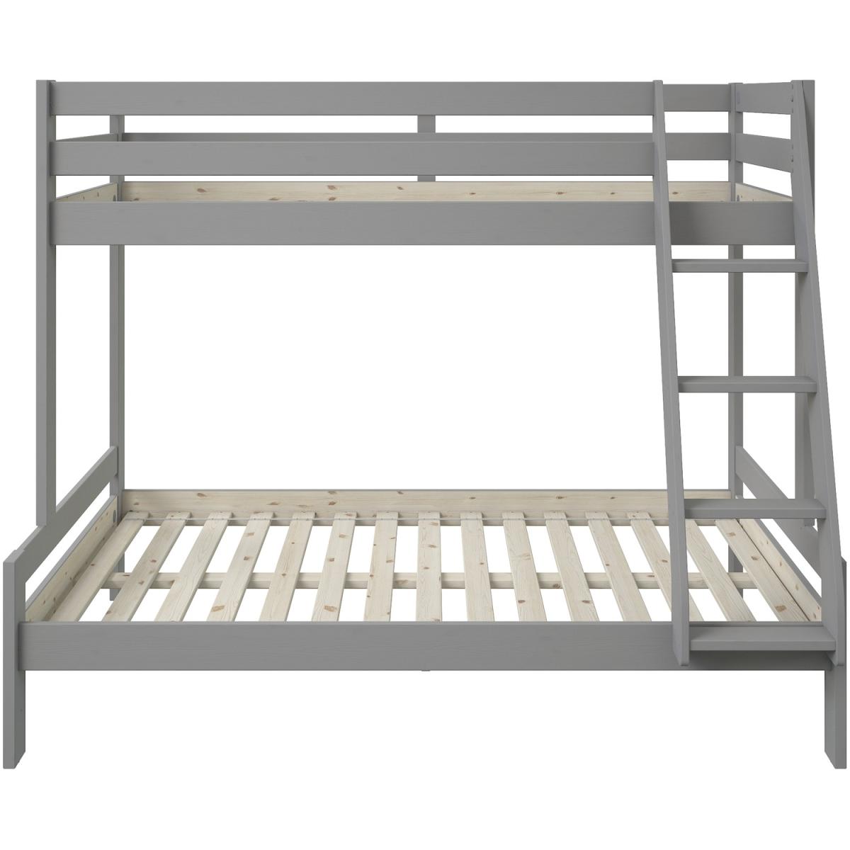 Part of the Nora range, this solid wood triple bunk bed is available in a solid pine strong frame built for longevity, whilst offering its modernised design. The Nora has plenty of head room on the bottom bunk, making it easy to sit and read to your little one. All Noomi beds are made from certified, meaning the wood is sourced from sustainably managed forests. The Pine is coated with a luxurious White, non toxic, eco-friendly water based paint. Each individual piece of wood is moisture tested to ensure a strong, long lasting build. Using only ethically sourced Solid Scandinavian pine, which grows slower due to the colder atmosphere in the Nordic regions. This makes it straighter, stronger and have fewer knots. Requires a Single Continental (90x200cm) and a Small Double Continental Mattress (120x200cm)