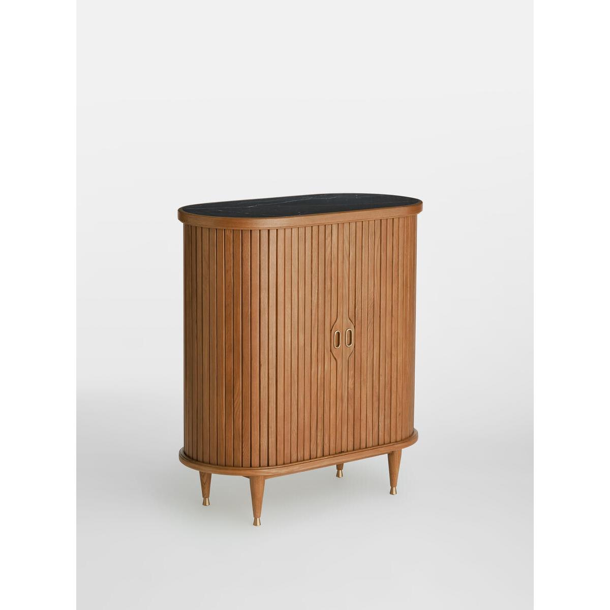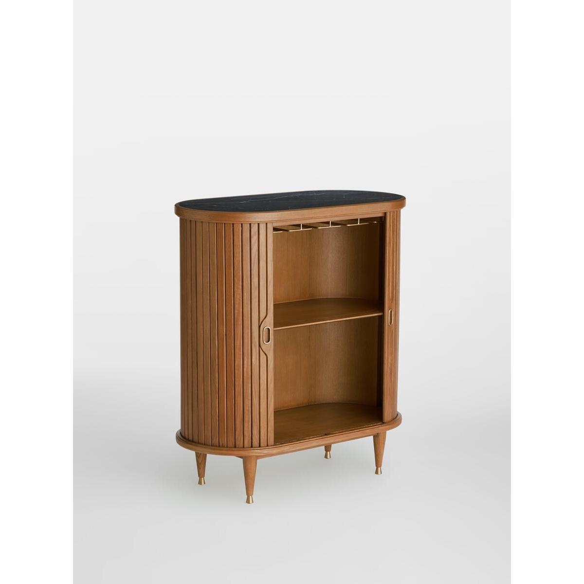 Nora Tambour Bar, Oak and Dark Marble