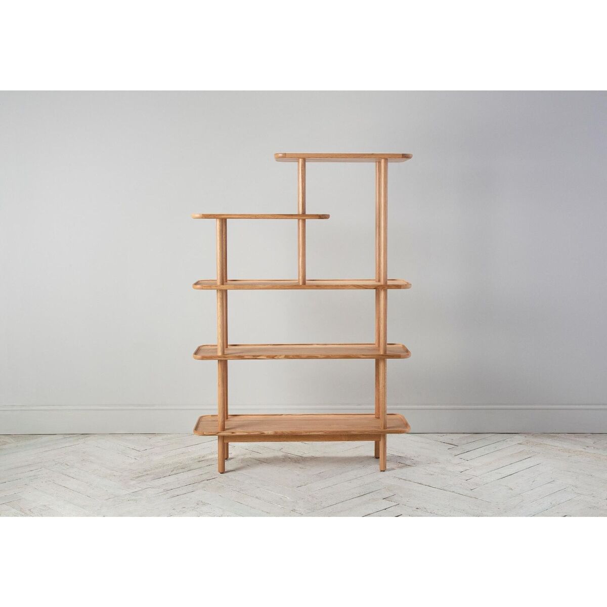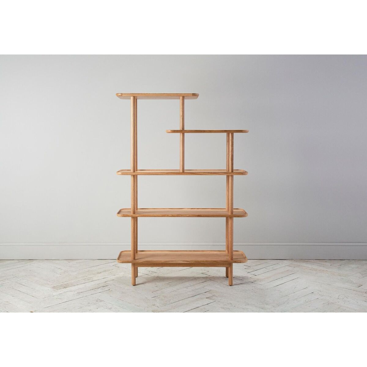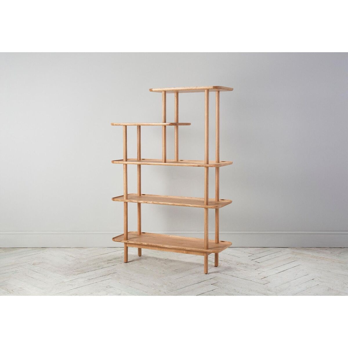 Noranda, a complete range of solid handmade European Oak Wood designs. With a rich colour tone and textured dry sheen level finish, this display shelving unite complete with three full and two half shelves is a must-have for those looking for a great stylish storage solution. Crafted with traditional dovetail jointing and an eye on practicality, this classic yet rustic design is the perfect addition to your home. Team up the Noranda display shelving unit with its matching standing mirror for a crisp, minimalist look that will style up your home.