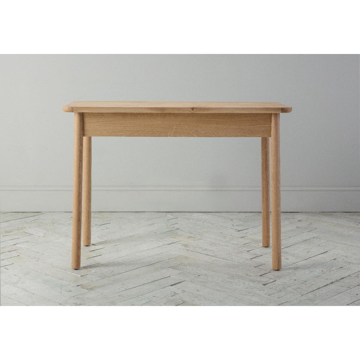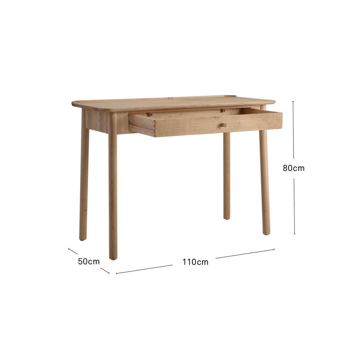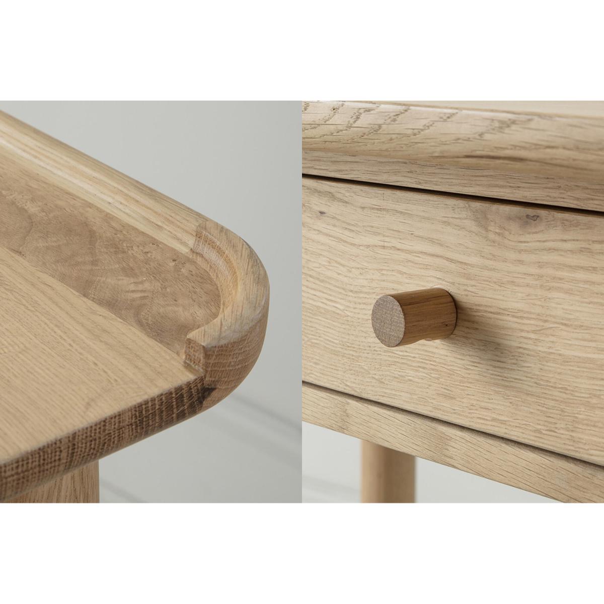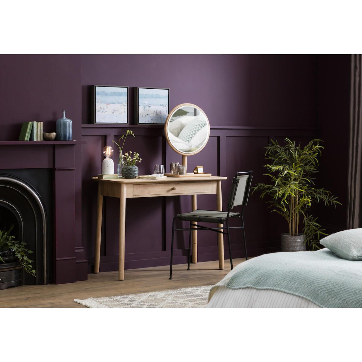 Meet the Noranda, a complete range of solid handmade European Oak Wood designs. With a rich colour tone and textured dry sheen level finish, this dressing table, which doubles as a desk is a must-have for those who want to create a relaxed bedroom. Crafted with traditional dovetail jointing and an eye on practicality, this classic yet rustic design is the perfect addition to your home. Team up the Noranda dressing table with its matching dressing table mirror for a crisp, minimalist look that will style up your home.