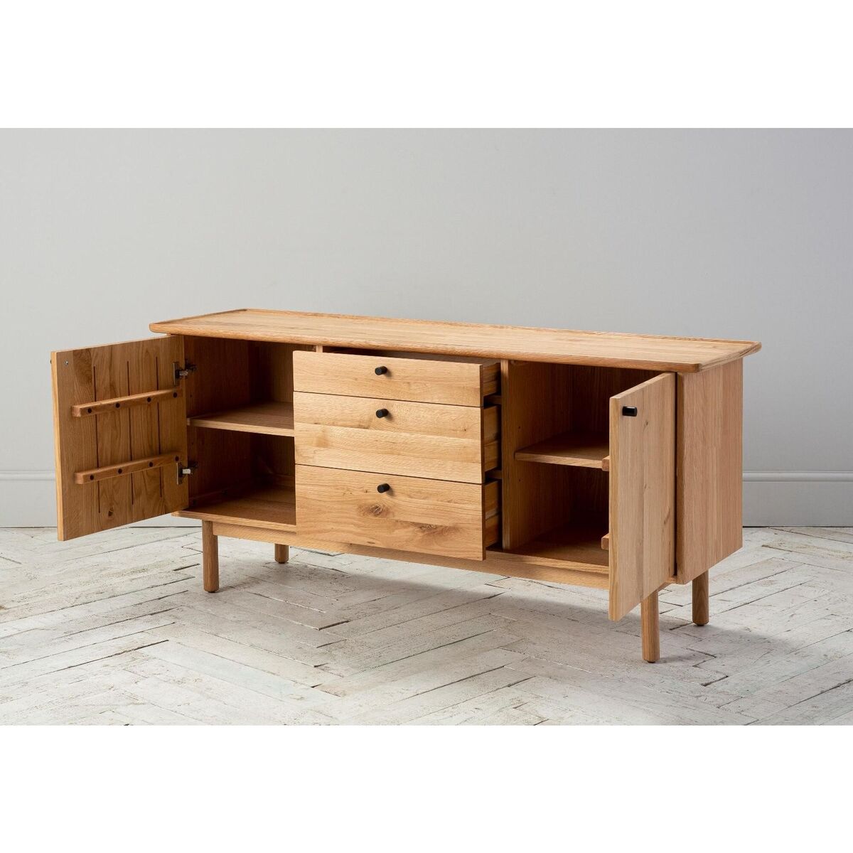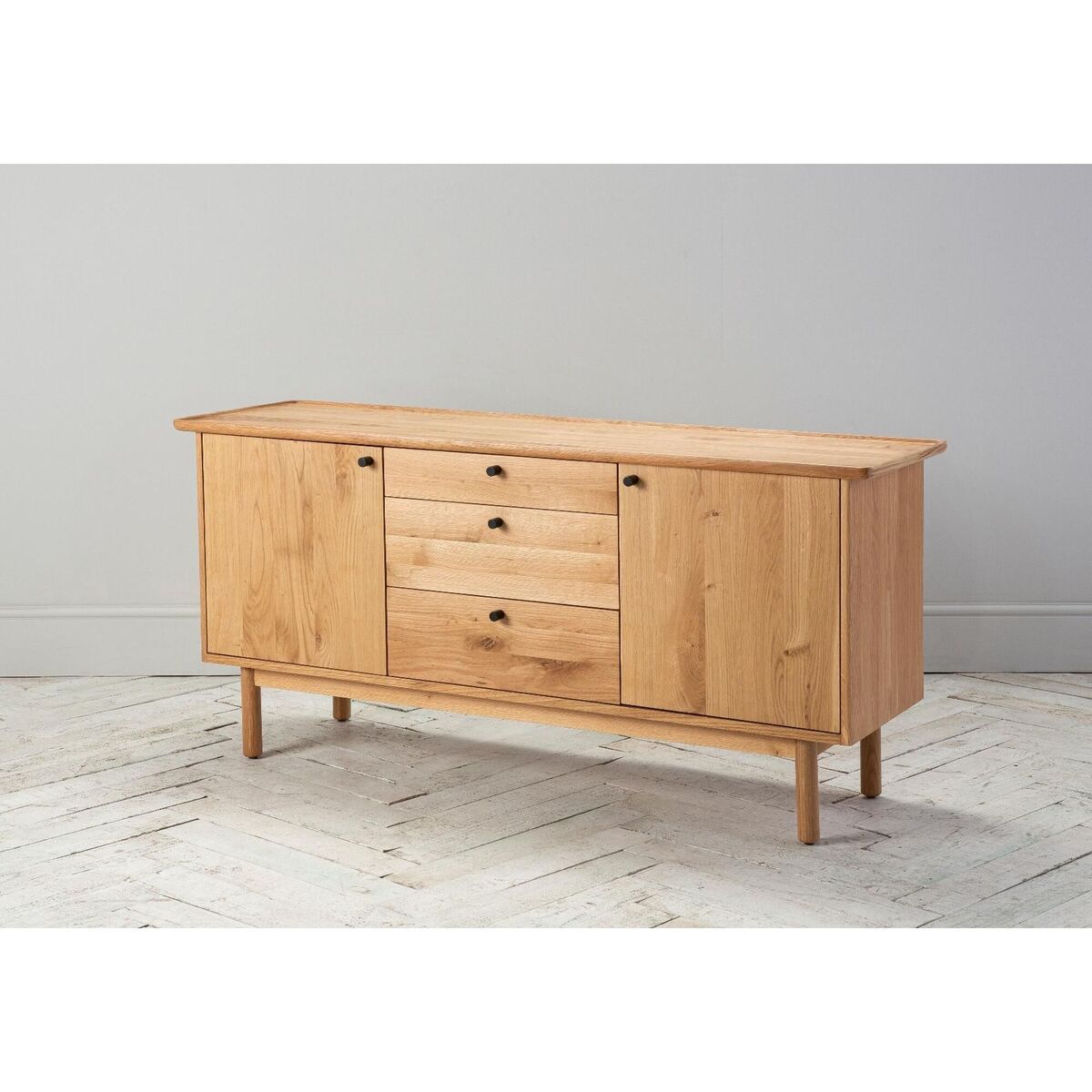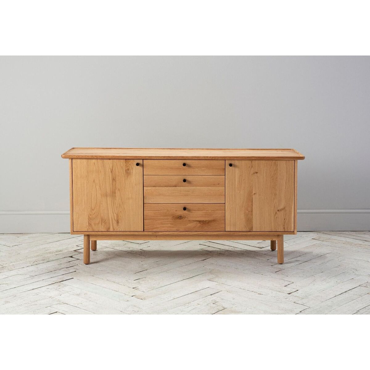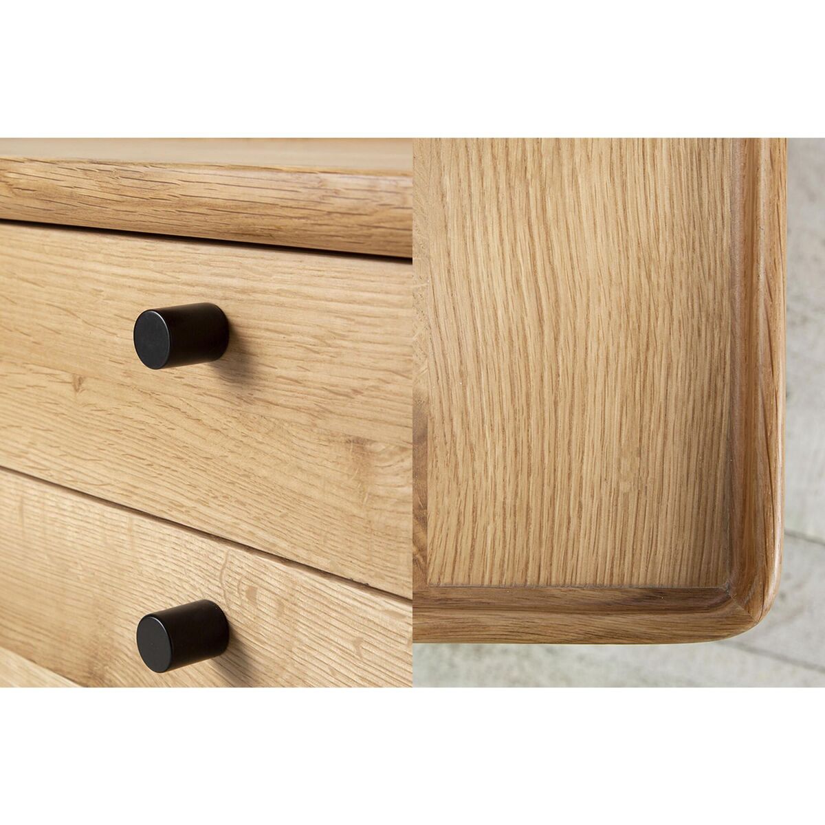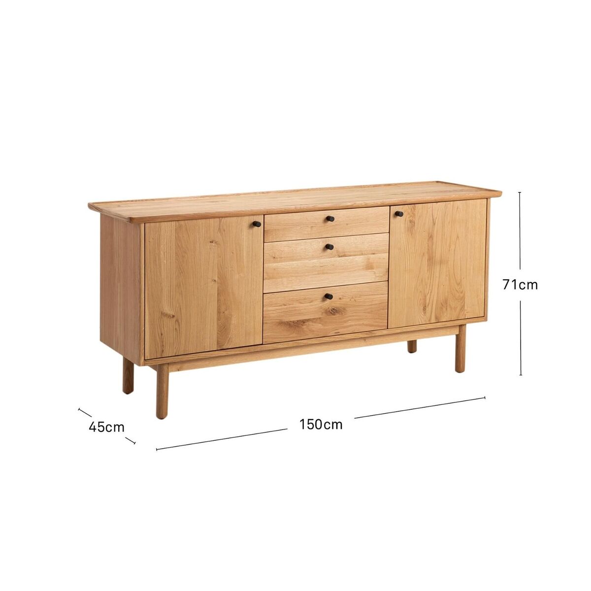 Meet the Noranda, a complete range of solid handmade European Oak Wood designs. With a rich colour tone and textured dry sheen level finish, this sideboard, complete with two doors and three drawers is a must-have for those looking for a great stylish storage solution. Crafted with traditional dovetail jointing and an eye on practicality, this classic yet rustic design is the perfect addition to your home. Team up the Noranda side table with its matching standing mirror for a crisp, minimalist look that will style up your home.