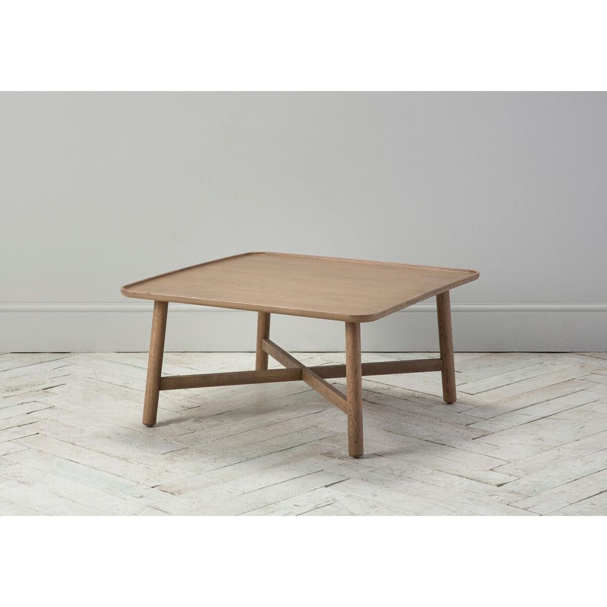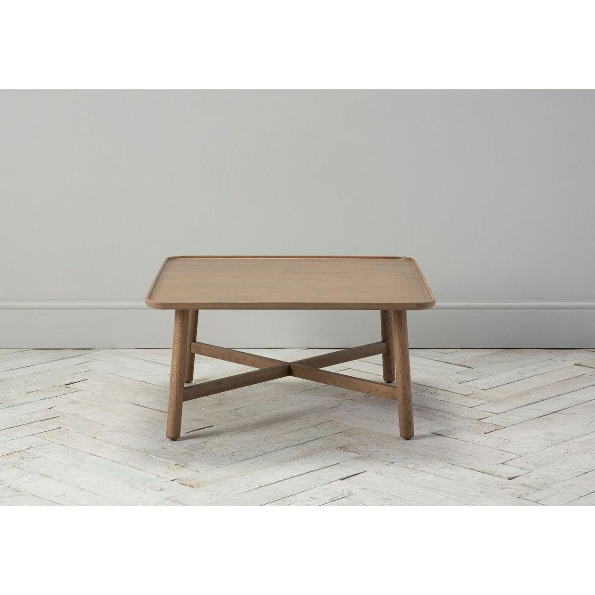 I love how this square oak coffee table in grey brings practicality and a neutral base to living spaces without feeling bulky. Its subtle grain and crossed-leg base sit comfortably in Scandi, modern or farmhouse-style rooms, and the grey wash pairs equally well with deep jewel-coloured sofas or linen upholstery. For styling, keep accessories minimal: try a stack of design books, a small ceramic vase and a soft wool throw draped over one edge. If you need extra storage, slide a pair of woven baskets underneath to keep magazines or blankets tucked away, maintaining a neat, uncluttered look.
