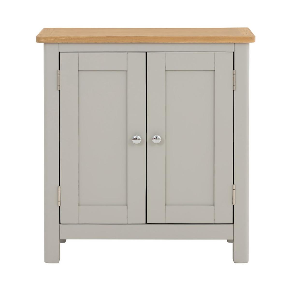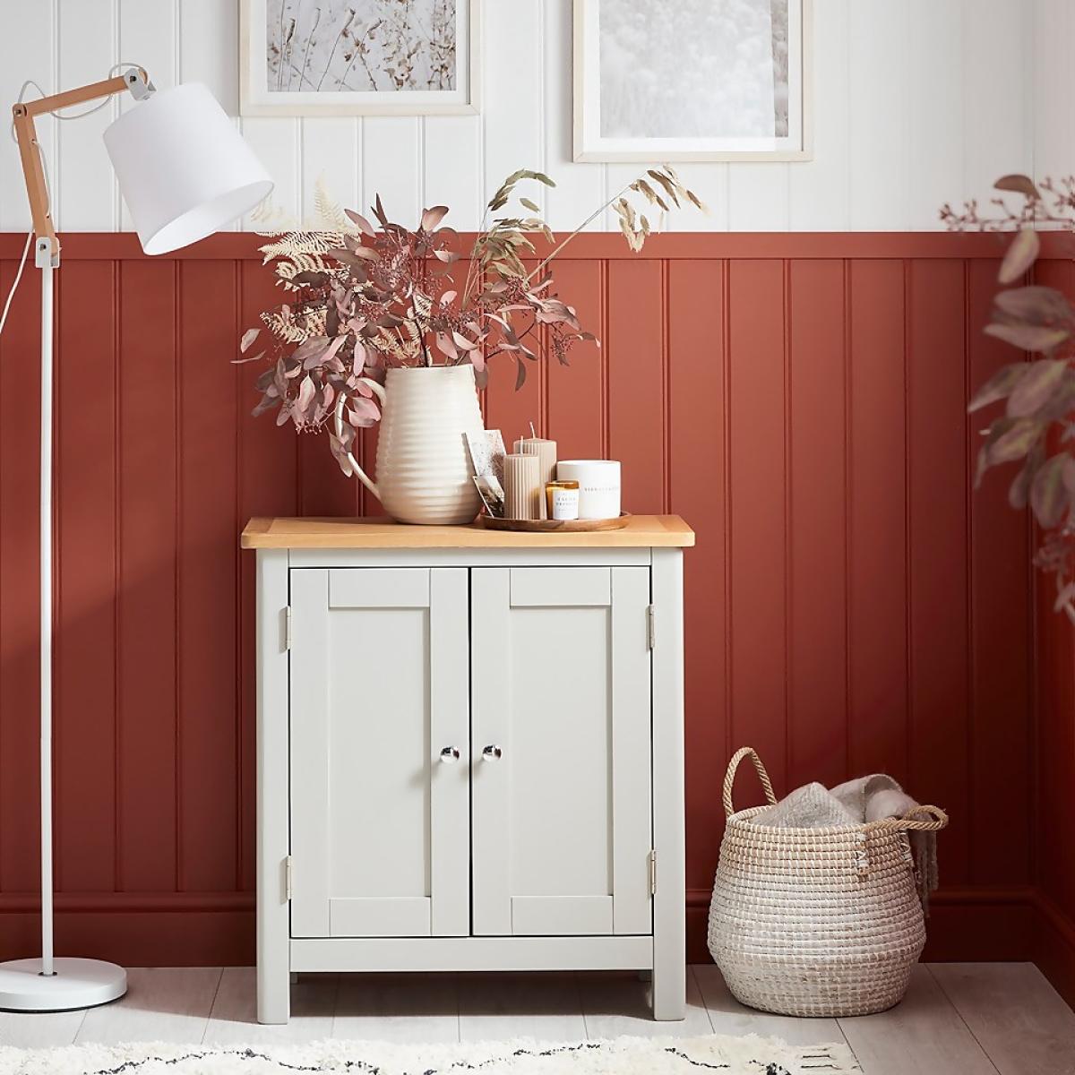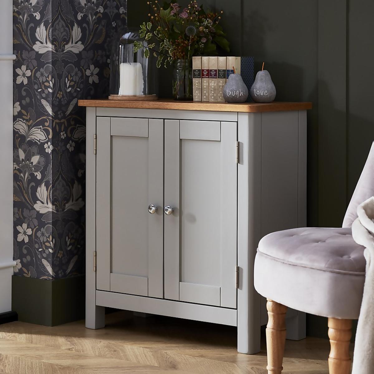 We've worked hard to make Norbury our most family-friendly range yet. We've softened all the edges, even the legs, so there are no sharp corners here. This compact collection has a small footprint, but its clever design doesn't compromise on storage space. Meet our Norbury extra small grey sideboard. It features charming timeless details such as the classic oak top and exposed hinges but with a modern painted grey finish. Use this compact delight to take care of clutter in your lounge, dining room or hallway. The design fits neatly in small nooks to make the most of your precious space.