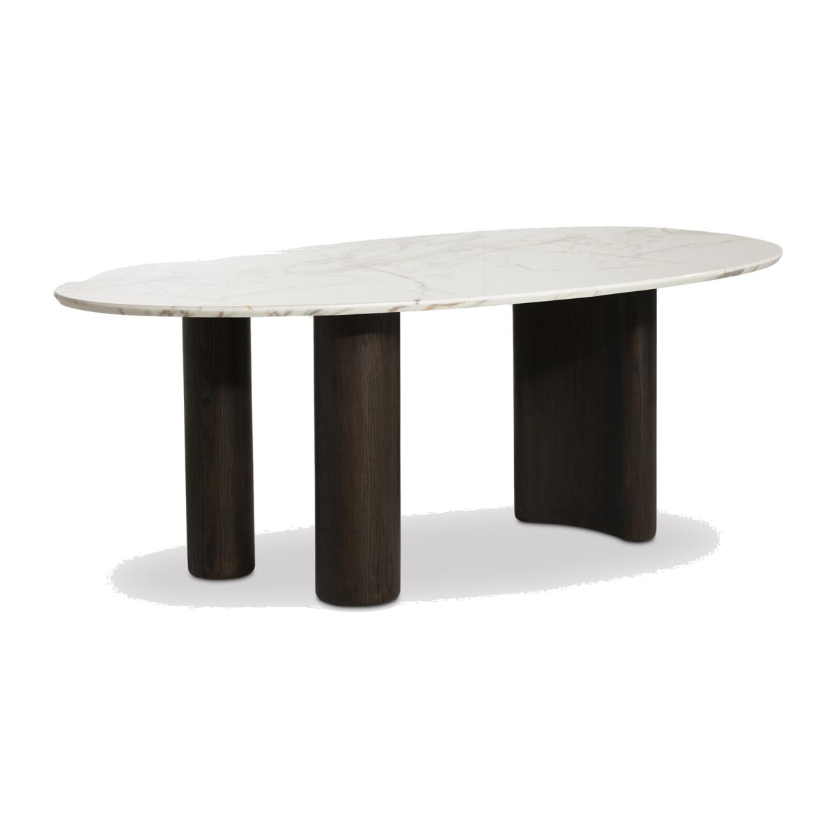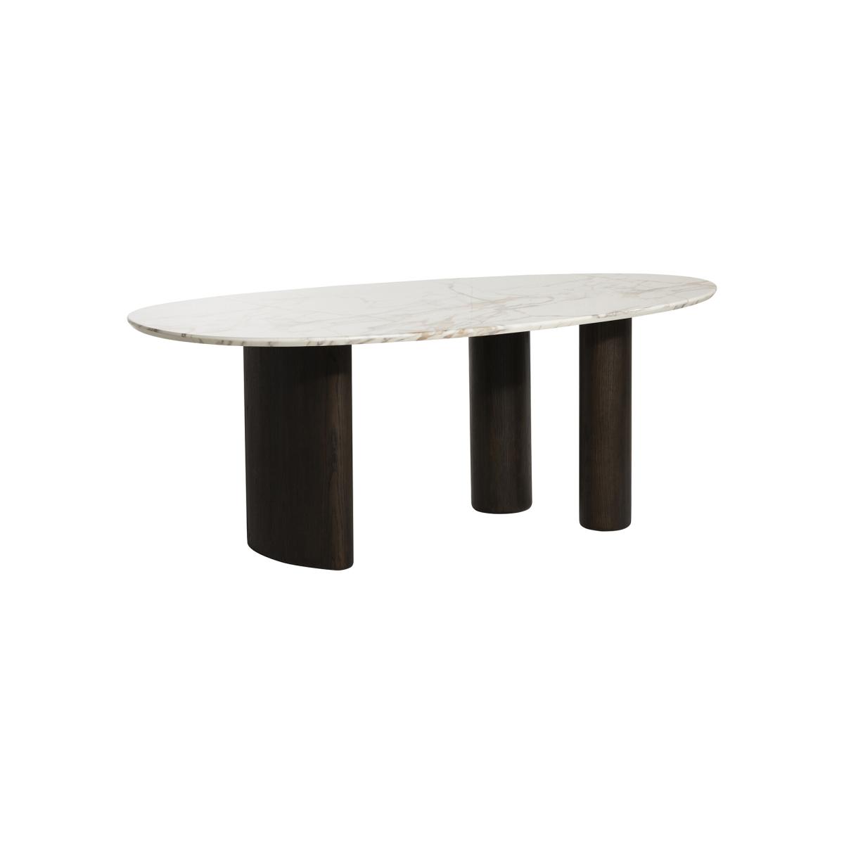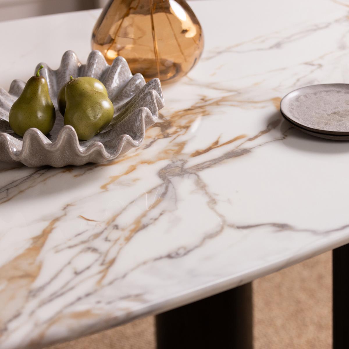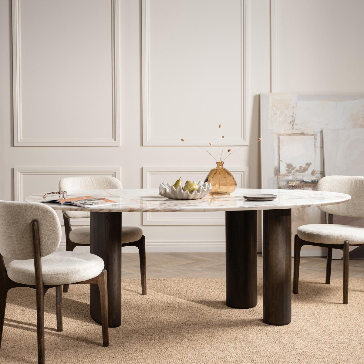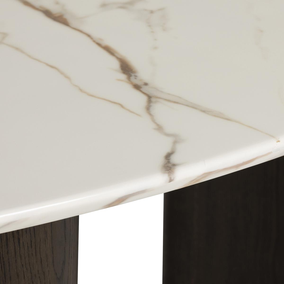 Elevate your dining experience with this stunning ceramic dining table. Its marble-effect top offers timeless elegance and easy maintenance, while three distinctive brown MDF legs — one gracefully curved and two smooth cylindrical — create a striking, modern silhouette. Designed to balance style and stability, this table makes a bold statement in any contemporary dining space, inviting family and friends to gather around in comfort and sophistication.