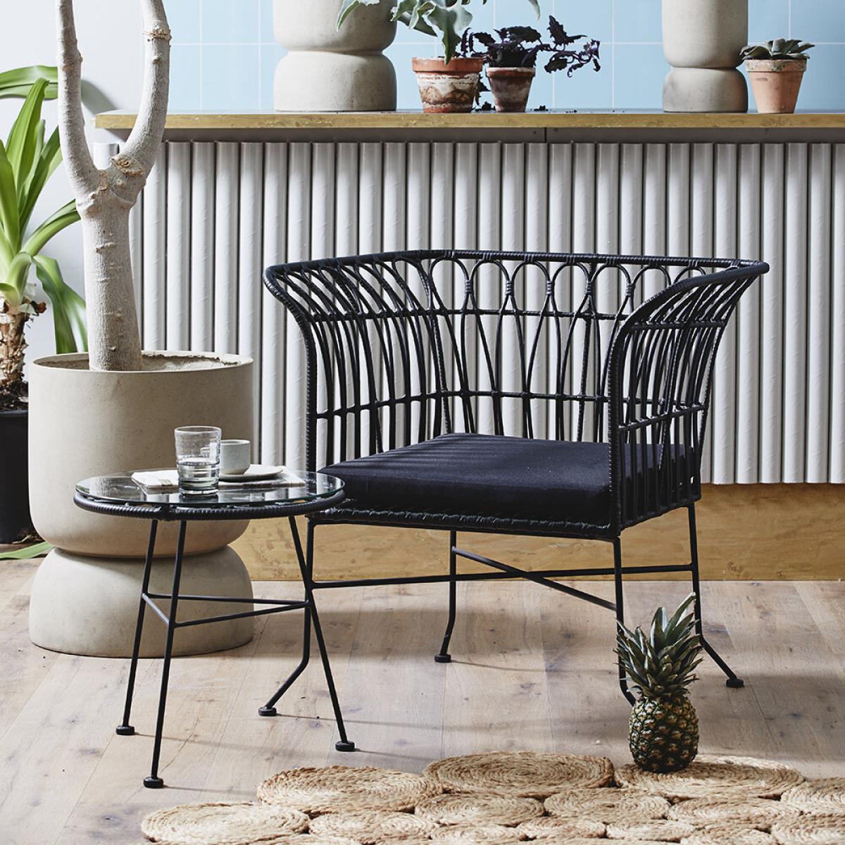 I really like this black lounge chair for its sleek, sculptural frame which adds a contemporary edge to any space. It works well in both modern and eclectic interiors, especially when paired with soft textiles or vibrant accessories to soften the look. Practical styling tips include placing it in a reading nook with a cosy throw and a side table, or using it as an accent piece in living rooms or bedrooms to create visual interest. Its open, airy design makes it versatile; just be mindful of combining it with other dark or busy patterns to avoid overwhelming the space. Overall, it's a stylish and functional choice for adding character and comfort.