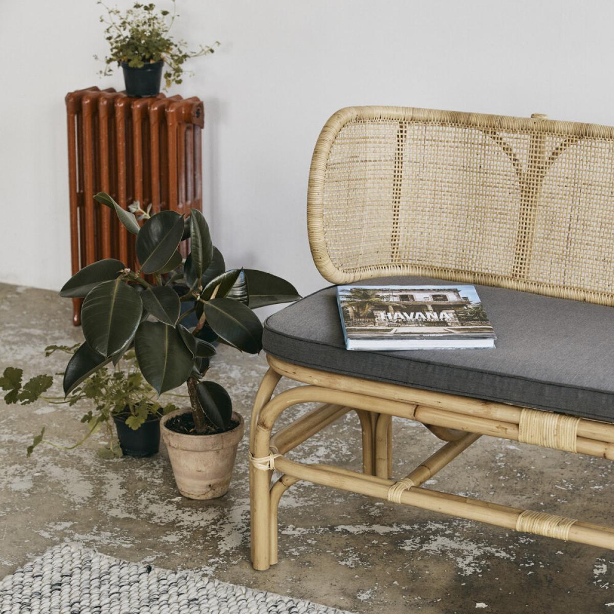 Sit back and relax with this Bali Bench from Nordal. With curved features and a grey seat pad, this hand-woven bench is the perfect addition to your home. Taking inspiration from Bali, this natural rattan piece is simply elegant.