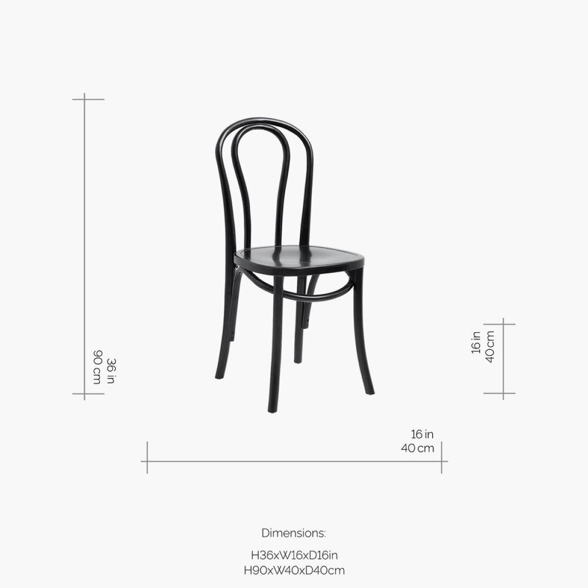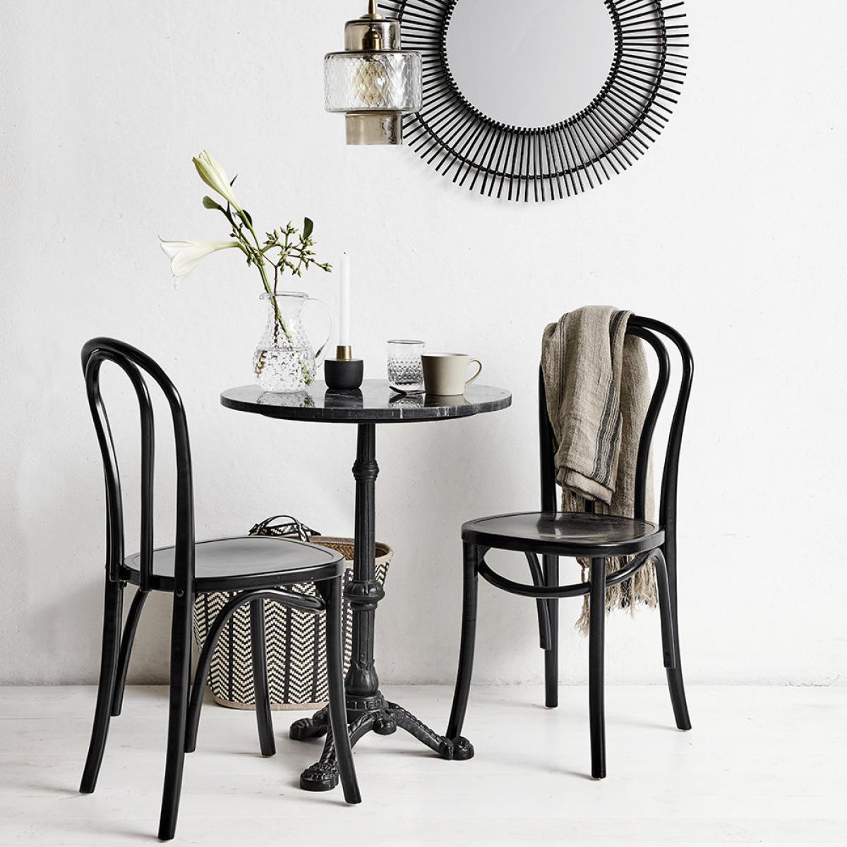 Bring a touch of Parisian bistro style to everyday dining with this chair from Nordal. Crafted from birchwood in a classic shape, it's available in several finishes to suit your interior from shiny black, white and wood. Key features: * Bistro chair * Material: birchwood * Dimensions: H90xW40xD40cm * Seat height: 46cm * Shiny black finish