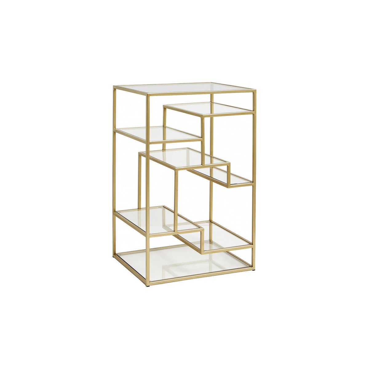 Make a statement with this display cabinet from Nordal. Made from solid iron, it has a striking graphic design with 8 asymmetric shelves in gold. The perfect addition to your modern home, pair it with more furniture from Nordal to complete the look. Key features: * Display cabinet * Material: iron, glass * Dimensions: H71xW46xD38cm * Striking graphic design * With 8 asymmetric shelves * Each with a glass top * More furniture available from Nordal