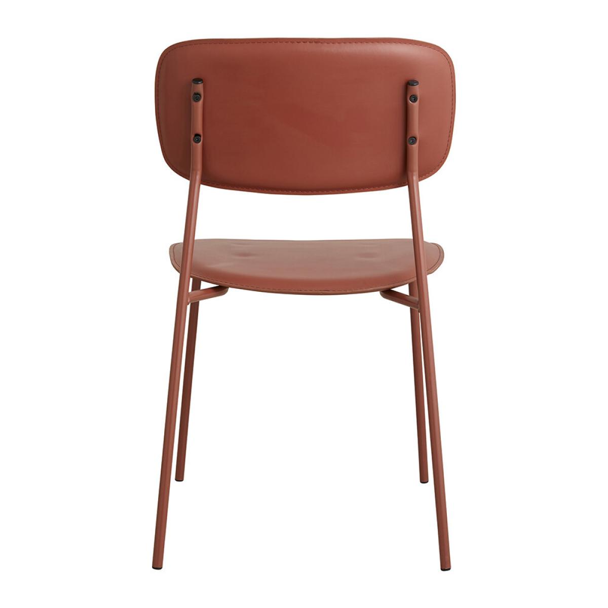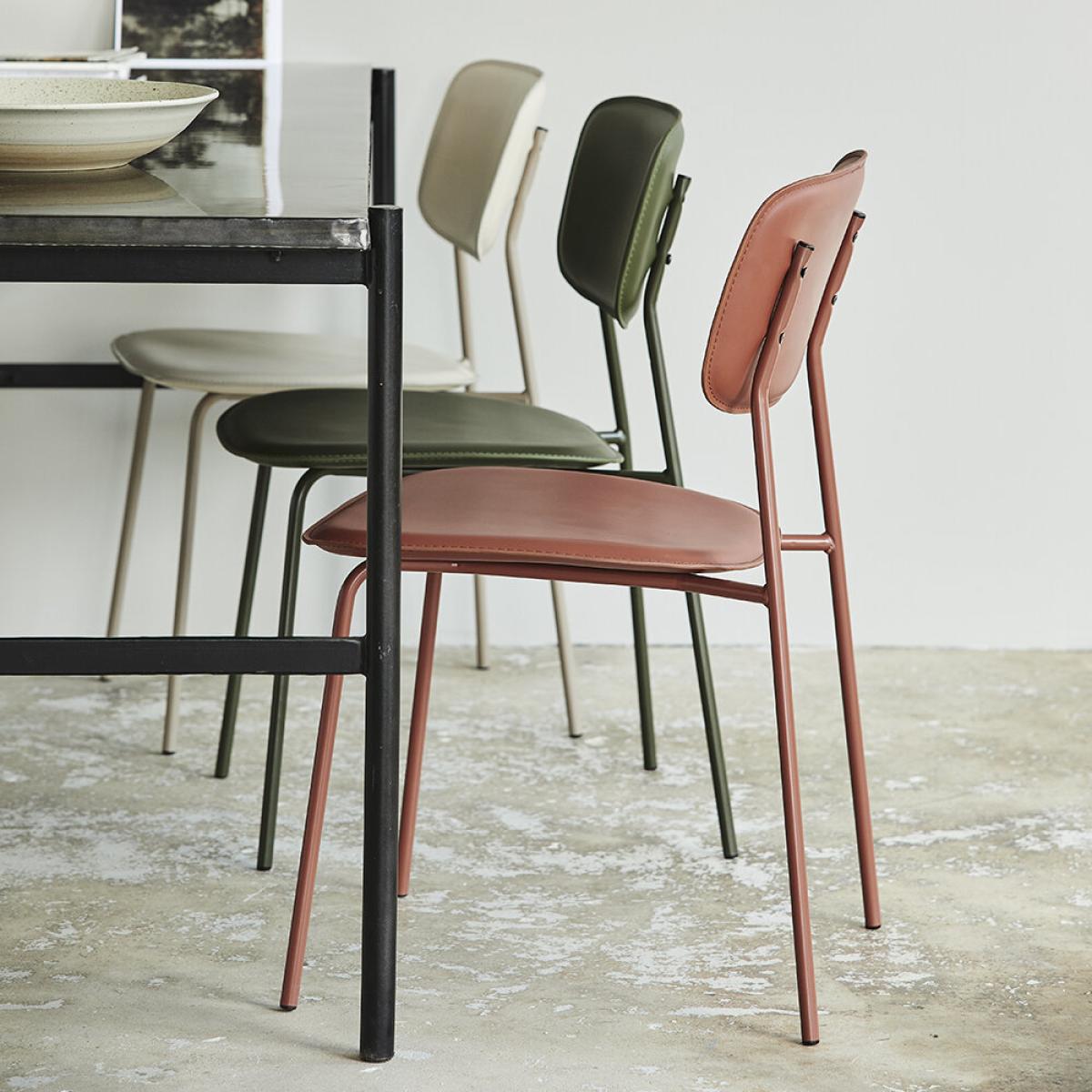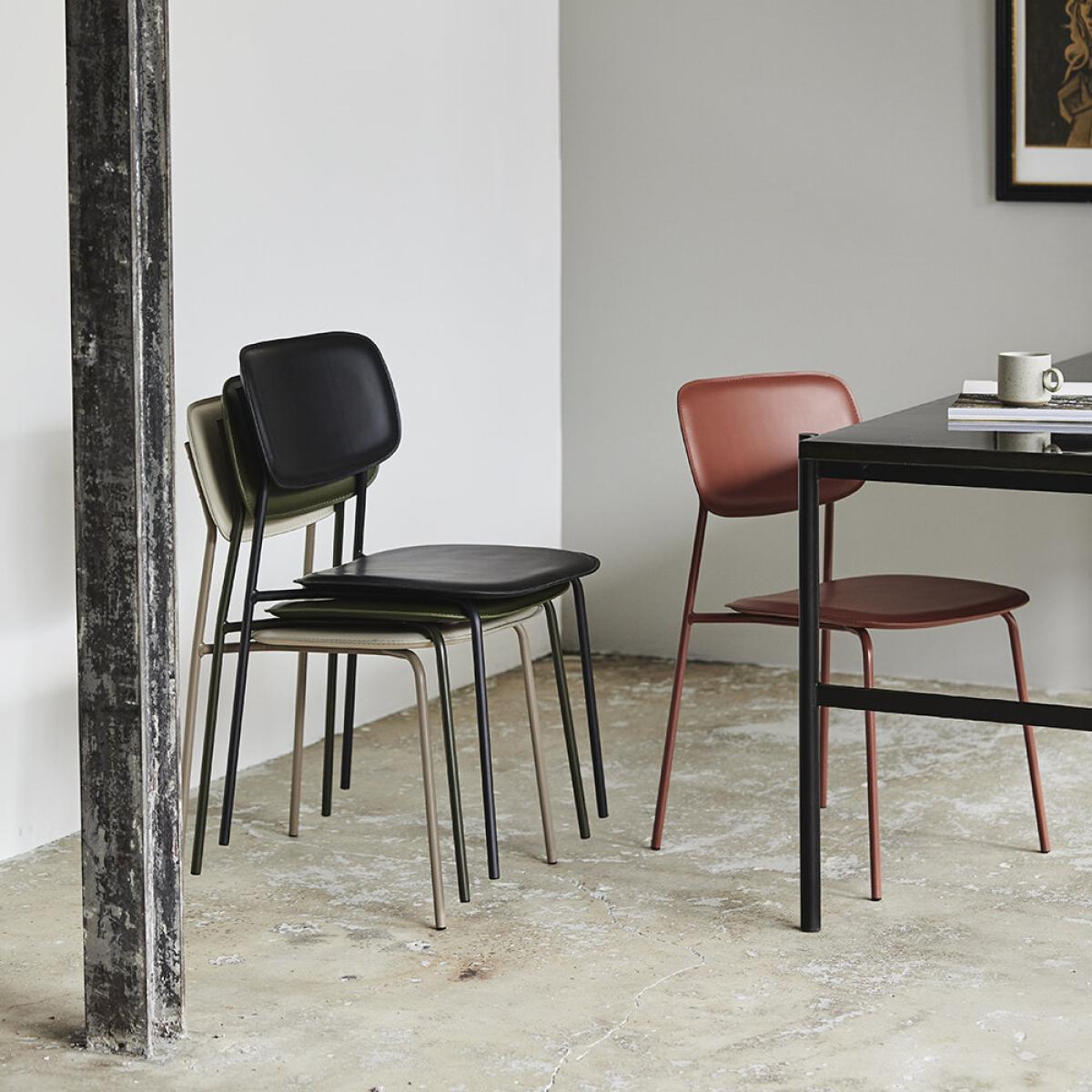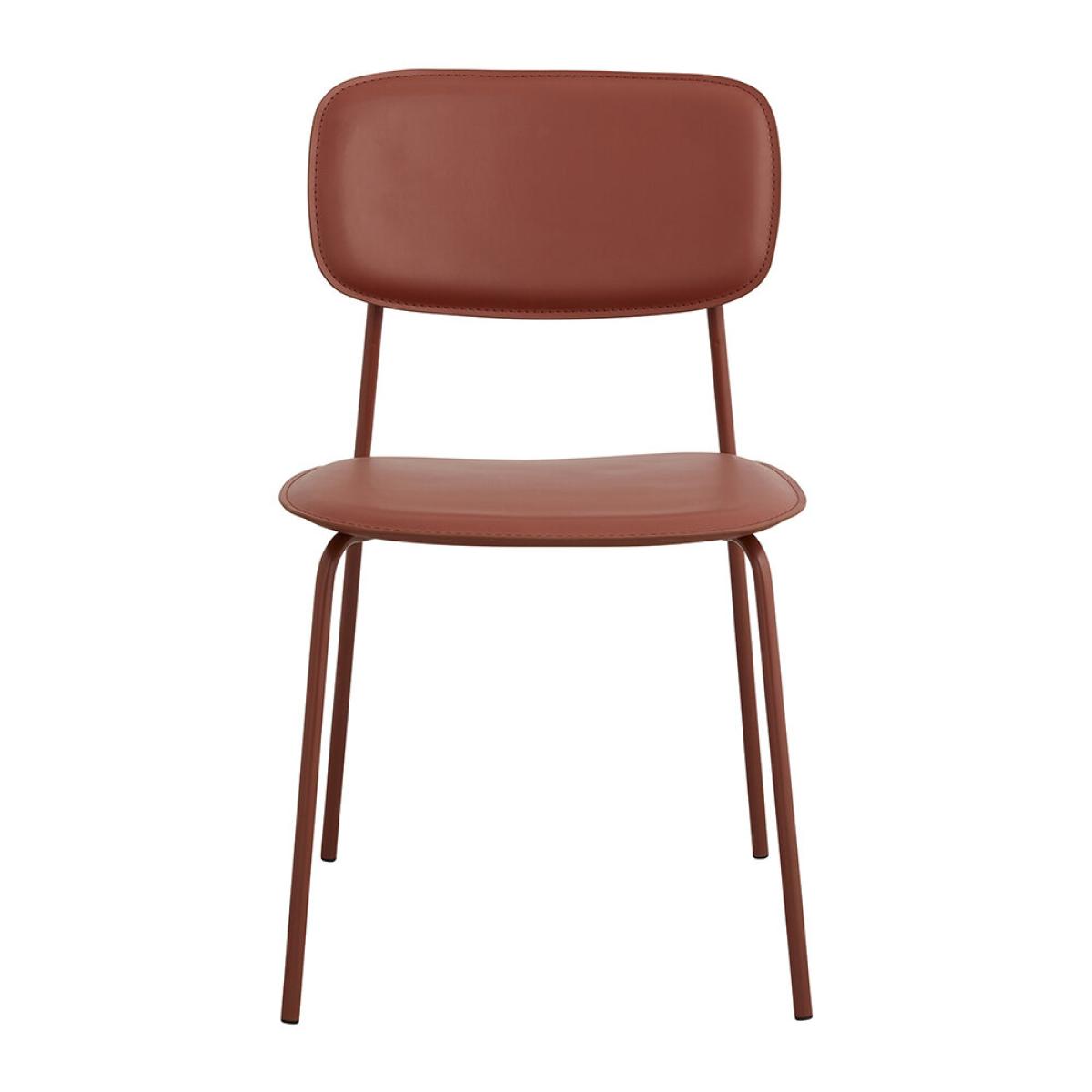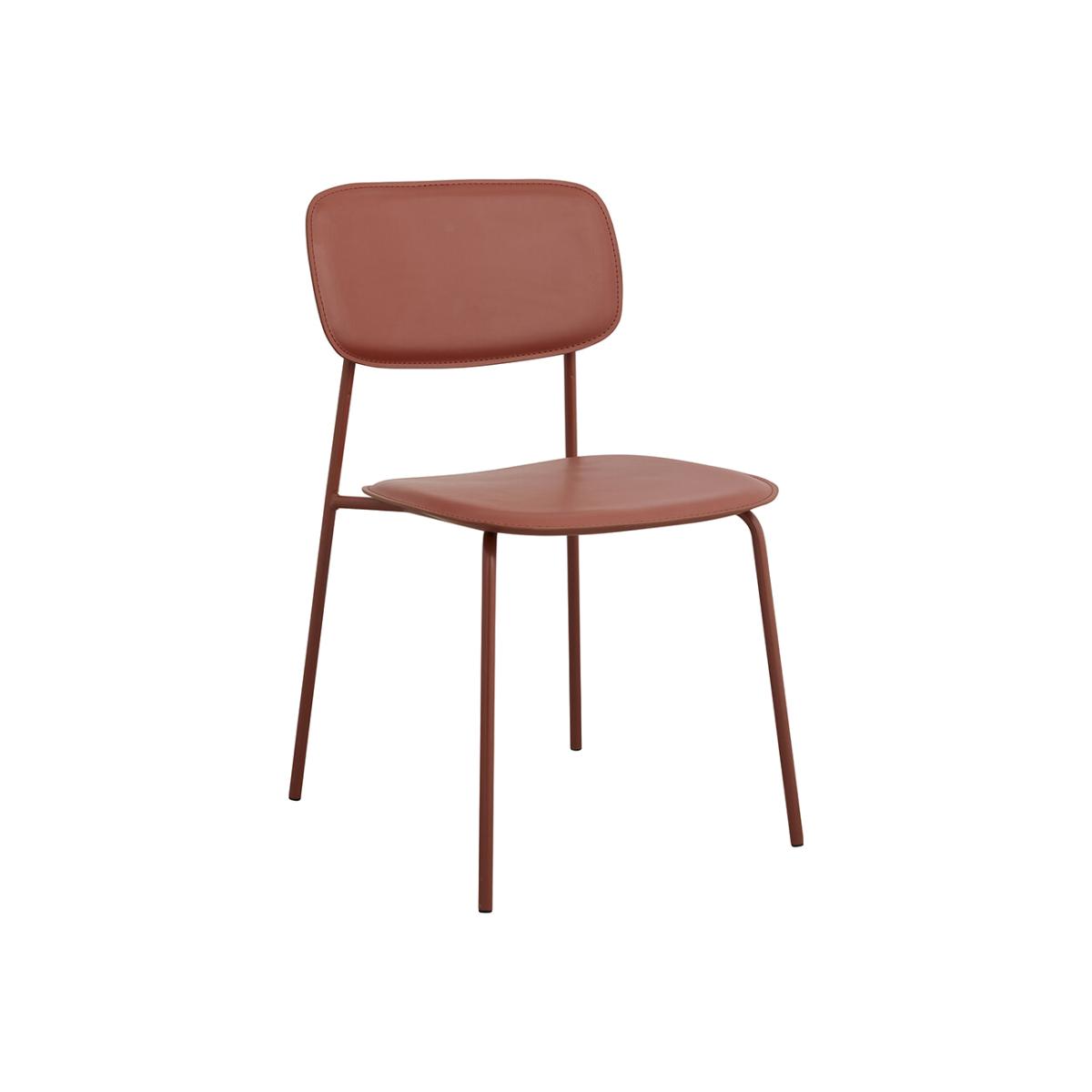 I love this chair for its clean, modern silhouette and the rich rust red hue that adds warmth to any space. It works particularly well in contemporary or Scandinavian-inspired interiors, where muted palettes are common but a pop of colour is welcome. The simplicity of its design makes it versatile, pairing effortlessly with both wooden tables and more industrial styles. Practical styling tips include mixing it with neutral-toned tables and cushions to keep the look balanced, or using it as a statement piece in more pared-back dining areas. Its lightweight frame also makes it easy to move around, perfect for creating flexible dining or social spaces.