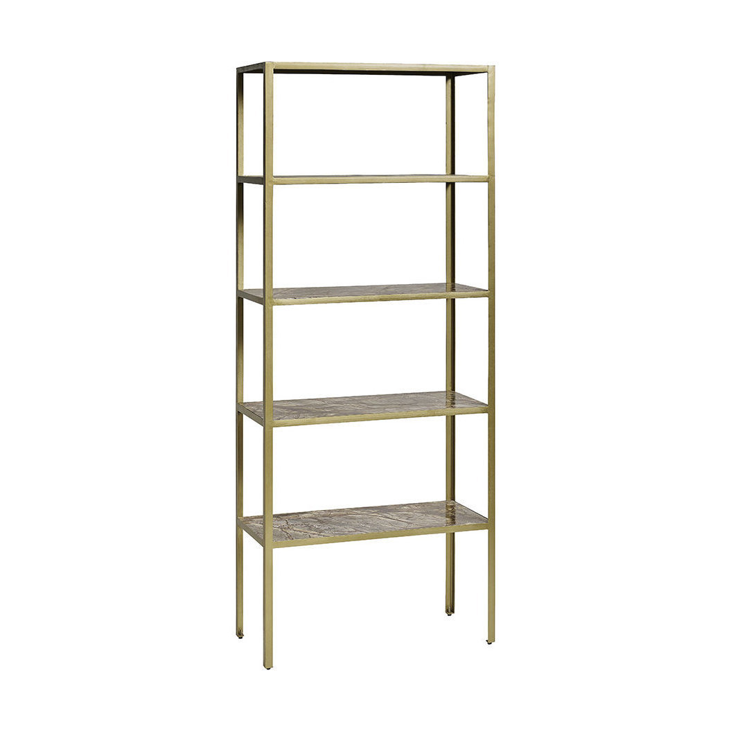 Get more organised in the home with this display rack from Nordal. A glint of glamour in any room, this shelving rack has a gleaming brass coloured iron frame. Finished with four shelves in smooth white marble, it's fabulous for displaying your favourite decorative accessories. Key features: * Display rack * Material: iron, marble, MDF * Dimensions: H180xW75xD35cm * Includes 4 white marble shelves * Brass coloured iron frame