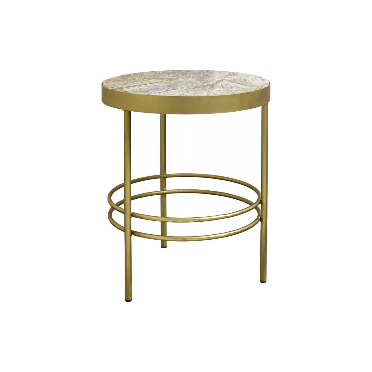 Update your space with the perfect side table. Featuring solid iron legs, this side table is gold in colour with marble detailing for a luxurious look. Pair with more furniture from Nordal to complete your interior. Key features: * Side table * Material: iron, marble * Dimensions: H57xØ50cm * Gold in colour with marble detailing * Solid gold coloured iron legs * More furniture available from Nordal