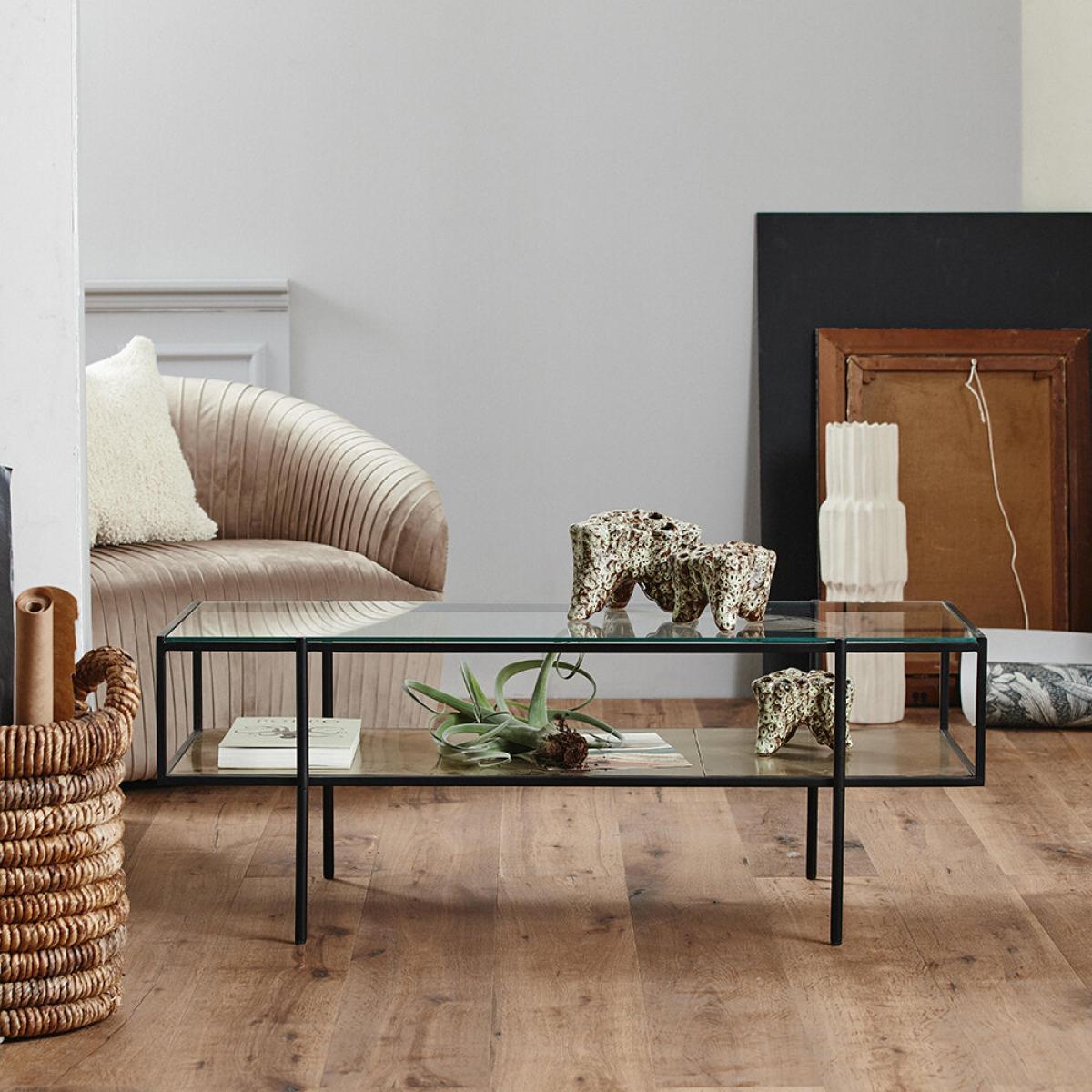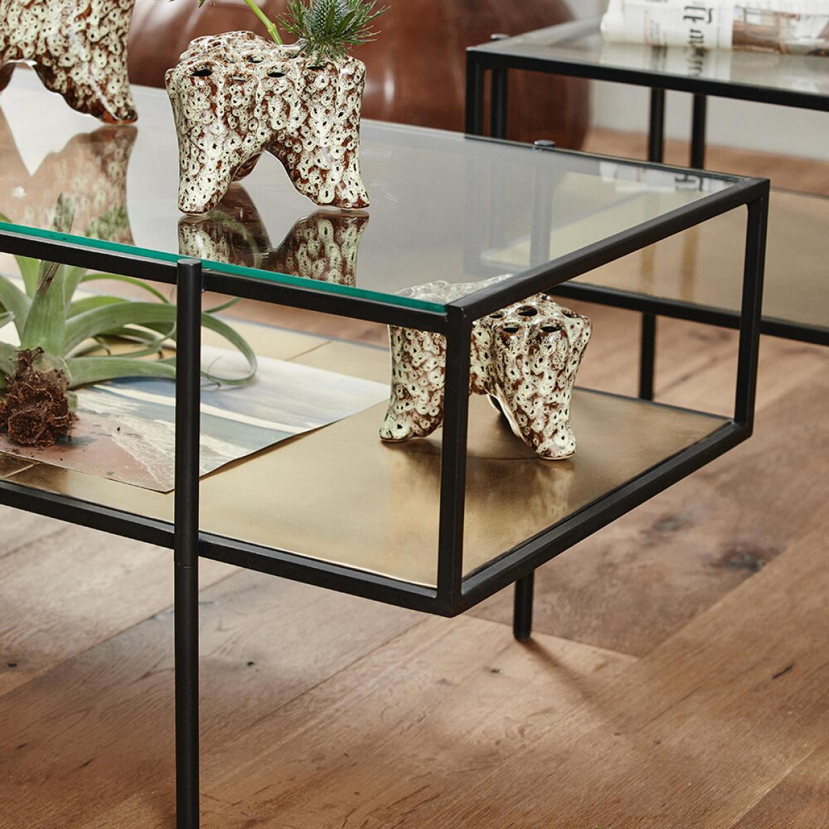 Create the perfect focal point with this Parana Coffee Table from Nordal. Made from iron and glass, this sleek and stylish table features a gold shelf. The glass tabletop makes it the perfect place to display coffee table books and ornaments.