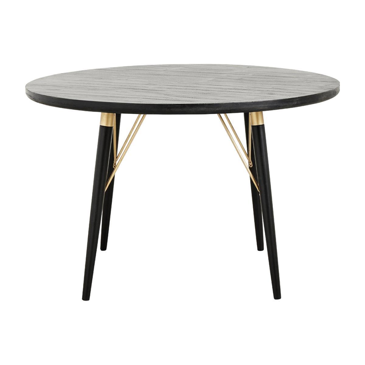 Update your eating space with this dining table from Nordal. In sleek black fir wood, this table has a beautifully simple design. Finished with gleaming brass detailing connecting the legs, it has a subtle sense of decadence to add drama to any meal.