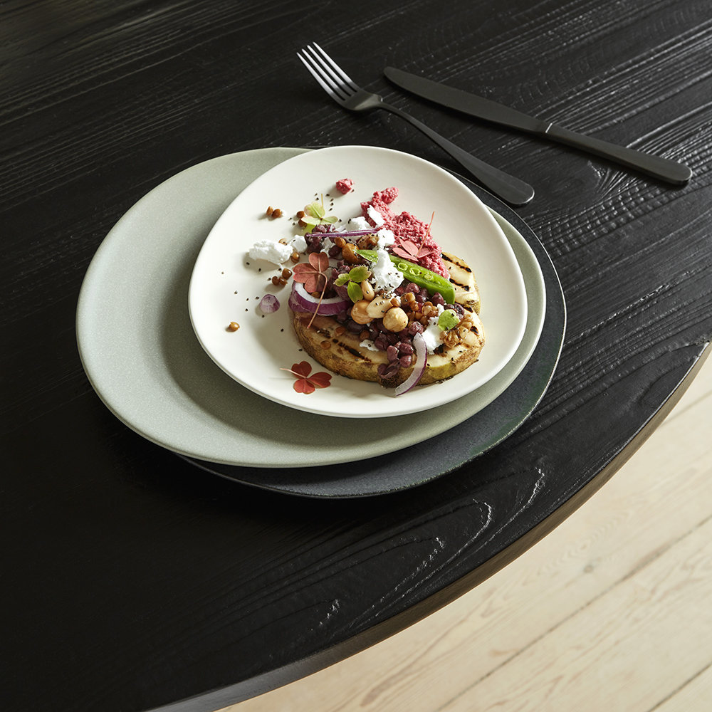 I love this round black table for its sleek, contemporary look that can anchor a variety of interiors. It works particularly well in modern or minimalist spaces, where its simple silhouette can be complemented with bold or colourful dining chairs for a stylish contrast. The round shape not only fosters a cosy, inclusive dining experience, but also makes it versatile enough to fit into more compact or open-plan kitchens and dining rooms. Practical styling tips include layering with textured tableware or placing a simple centrepiece like a vase or candles to keep the look clean but inviting. Its understated elegance also makes it a good foundation for more eclectic décor, allowing you to play around with different styles and accessories effortlessly.