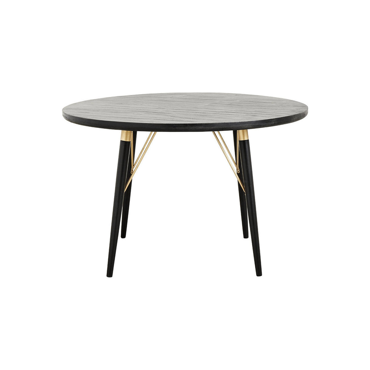 Update your eating space with this dining table from Nordal. In sleek black fir wood, this table has a beautifully simple design. Finished with gleaming brass detailing connecting the legs, it has a subtle sense of decadence to add drama to any meal.