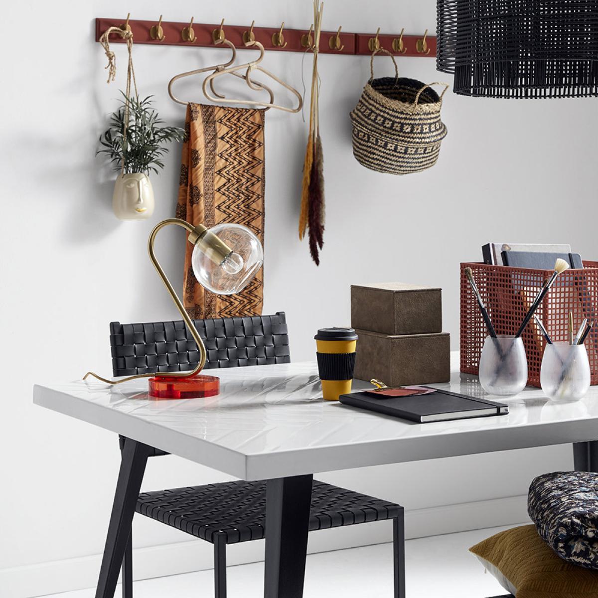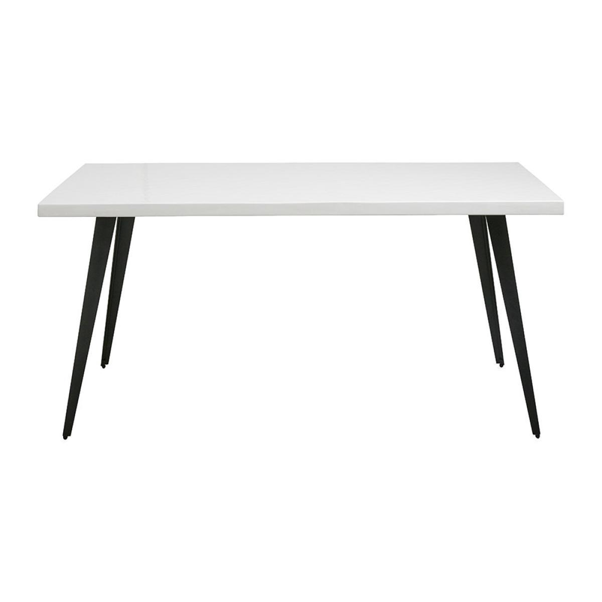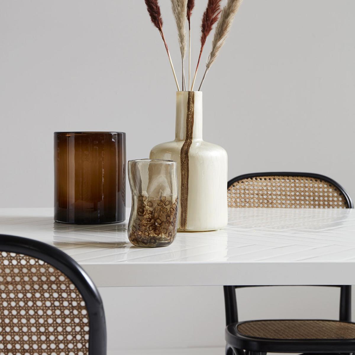 Update your eating space with this dining table from Nordal. Topped with natural mango wood and plywood, this table has a shiny white top decorated with a subtle herringbone design. Finished with contrasting iron legs, it's fabulous for both formal and casual dining settings. Key features: * 4-6 seater dining table * Material: iron, mango wood, plywood * Dimensions: H76xW160xD100cm * White wooden top * With a subtle herringbone pattern * Shiny, polishes finished * Contrasting black iron legs