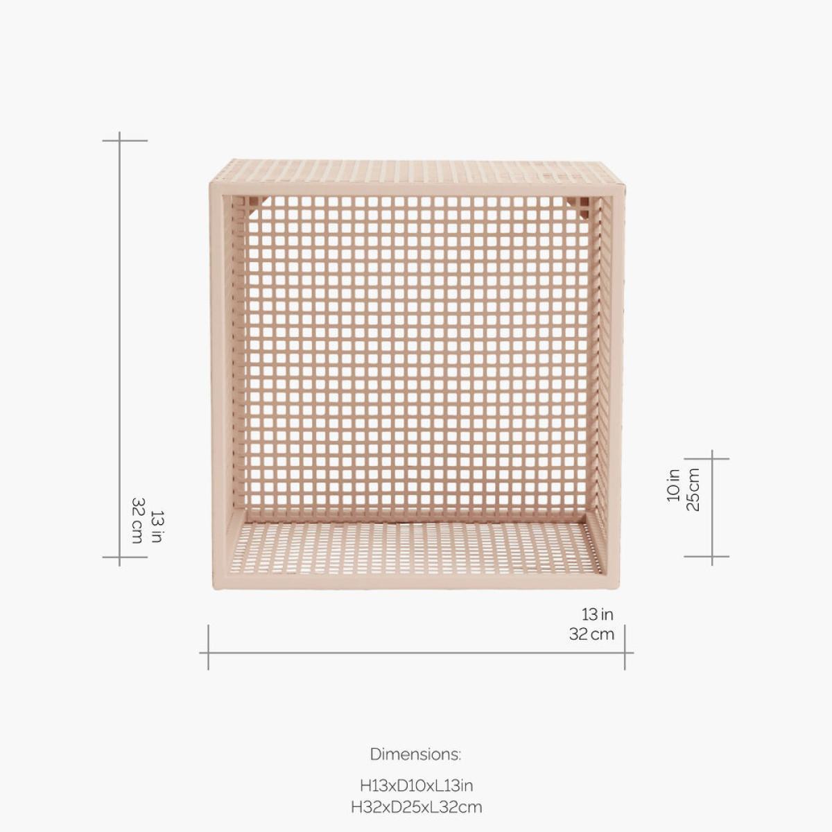 I love this wire box shelf in pink for its playful yet versatile look. It works particularly well in contemporary or minimalist interiors, adding a splash of colour and texture without overwhelming the space. It's perfect for showcasing small decorative objects, plants, or books, and its open design encourages an organised but airy feel. When styling, consider pairing it with neutral tones to let the colour pop or mixing it with other pastel pieces for a soft aesthetic. Practical tip: its openness makes it easy to keep tidy and allows light to flow freely, making it ideal for smaller rooms or spaces that need a visual lift.