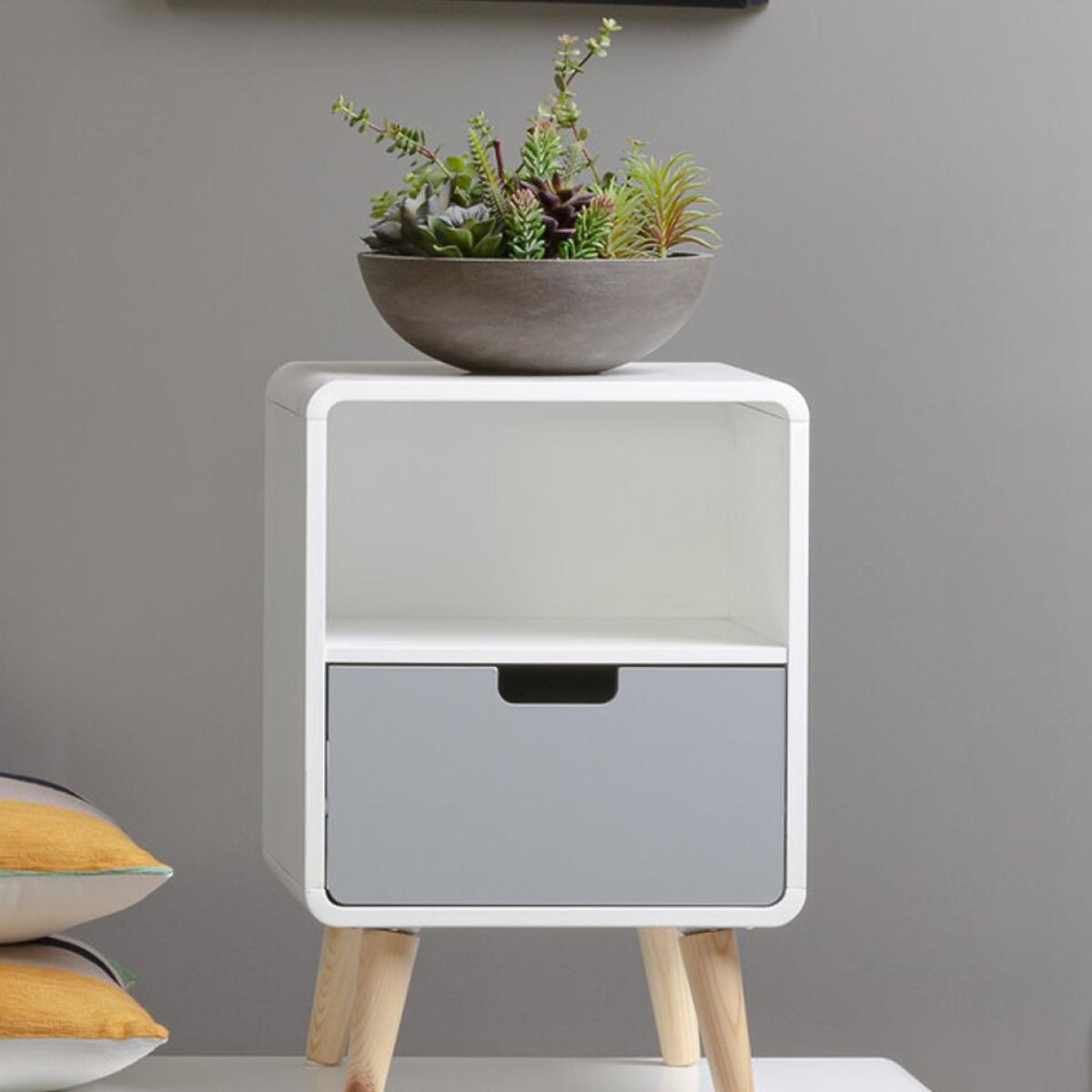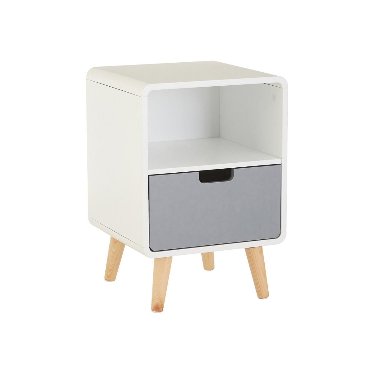 A crisp finish with rounded corners is perfect for kids bedrooms. A single drawer adds extra concealed storage, and features a cutout handle for easy access with tiny hands. Four angled legs made from sustainable pine wood provide the perfect base. Product details Natural grained pine wood legs MDF construction Cutout handles. Assembly required Product Composition - Wood. Product Dimensions - 40 cm x38 cm x58 cm , Weight - 10.8 KGPackage Dimensions - 57 cm x 45 cm x 16 cm, Weight 11.6 kg. This product will be dispatched by one of our trusted suppliers. You’ll be contacted by their selected courier about your delivery. PREMI01