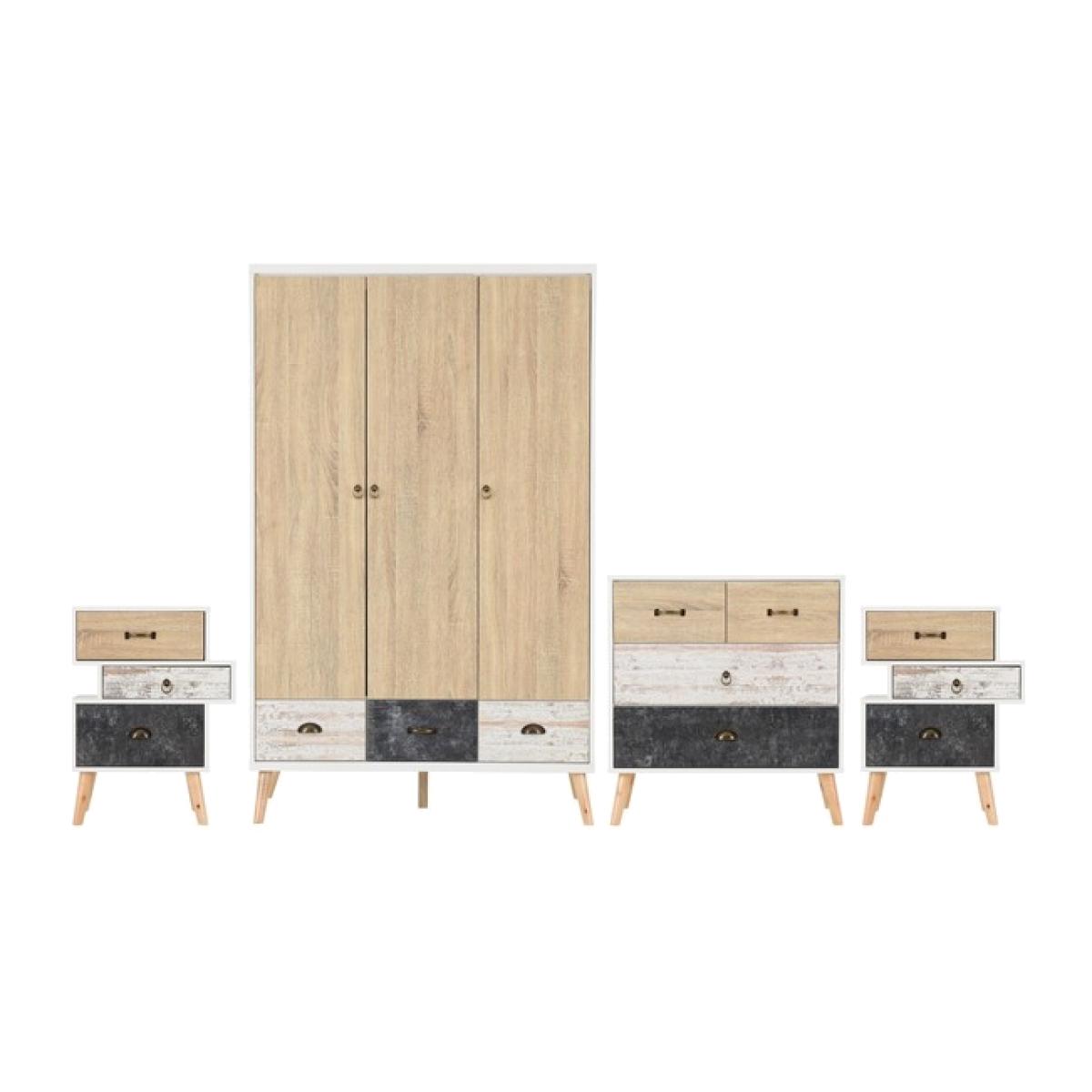 Nordic 3 Door 3 Drawer Wardrobe Bedroom Set - white and distressed effect