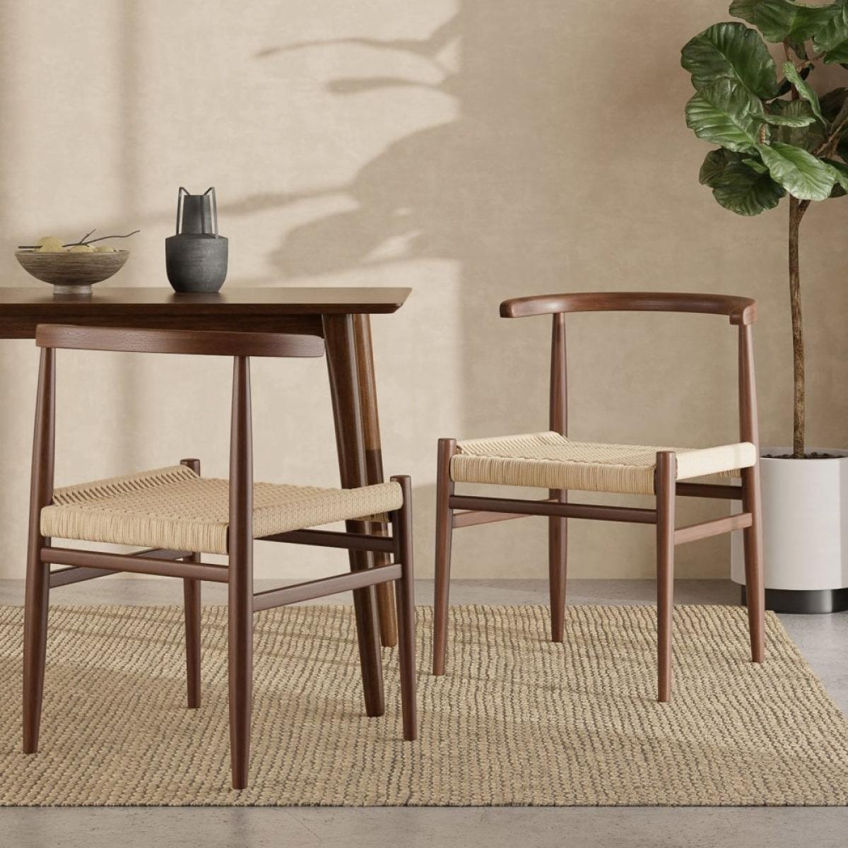 I love this chair for its clean, natural look that seamlessly blends Scandinavian-inspired minimalism with warmth. The natural weave paired with walnut lends it versatility, making it suitable for both modern and traditional interiors. It works especially well in light-filled dining rooms or open-plan kitchens, where it can add texture without overpowering the space. Practical styling tips include pairing it with a simple wooden or neutral-toned table, and layering with soft textiles like linen placemats or cushions for a cosy touch. It’s a great choice for creating an inviting dining area that feels both stylish and functional.