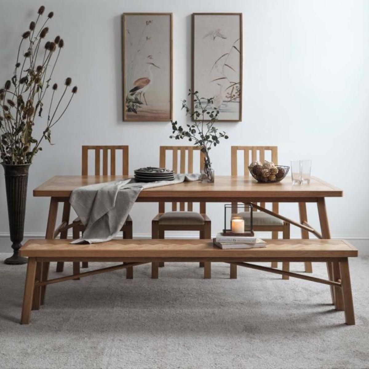 The Nordic dining table features a stunning herringbone table top made with contemporary oak veneers. Sat on Scandi-inspired solid oak angled legs, this table is robust and hardwearing for the demands of busy modern homes, with the style and elegance to be the star in any dining room or kitchen.