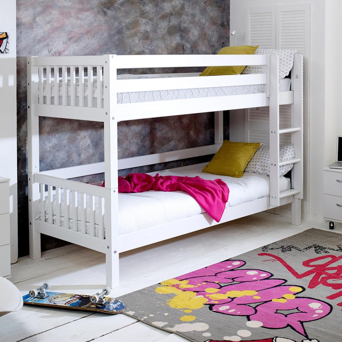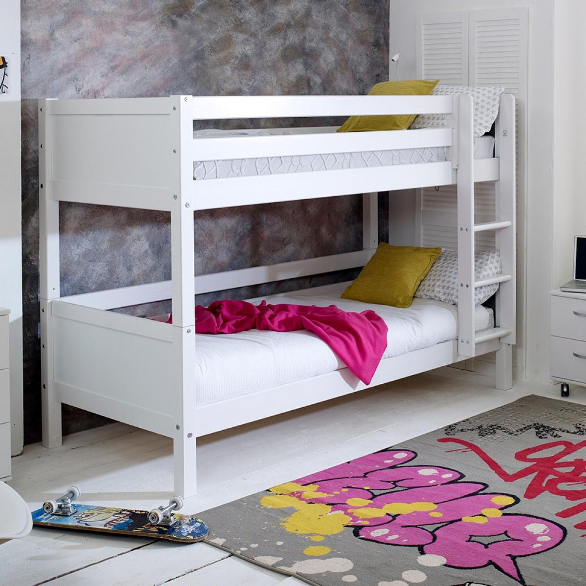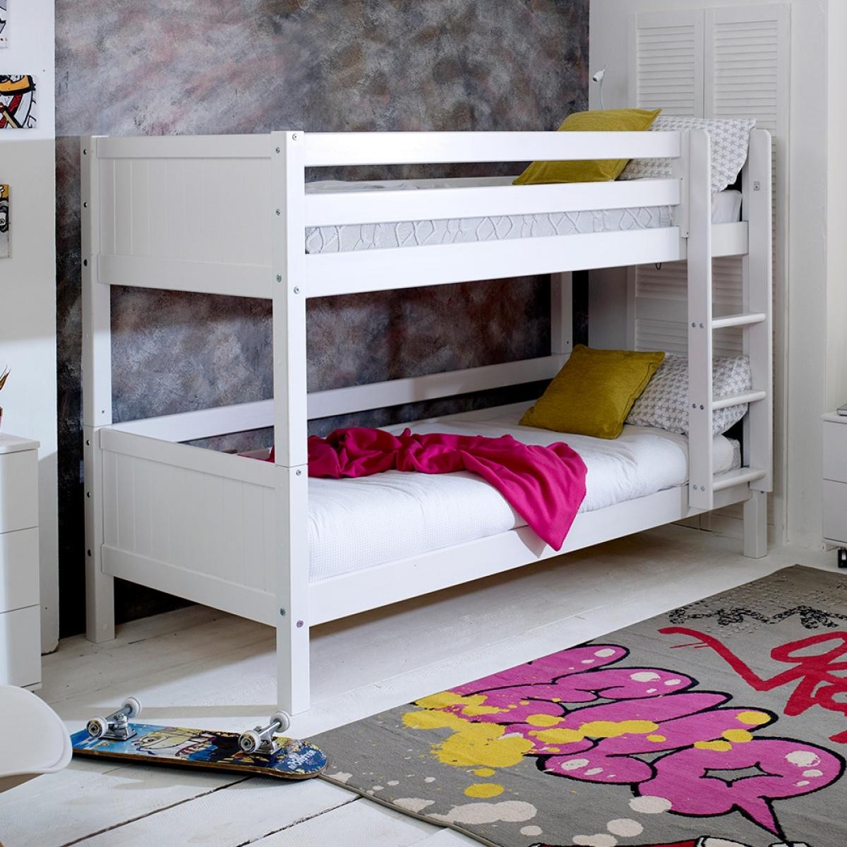 Simple but stylish, the Nordic Kids Bunk Bed 1 is a wonderful option for any children's bedroom. A perfect choice for smaller rooms, it gives your little one plenty of space to play! Manufactured from solid pine and MDF the fresh white colour will easily coordinate with any interior style and the great thing about this bed is that it can be converted into two single beds. Ideal for when your youngsters get a bit older! Now there's just the decision about who will be the lucky one to get the top bunk?!There is even the option to change the colour or design of the head and footboard so you can make your kiddies bed individual to them!.