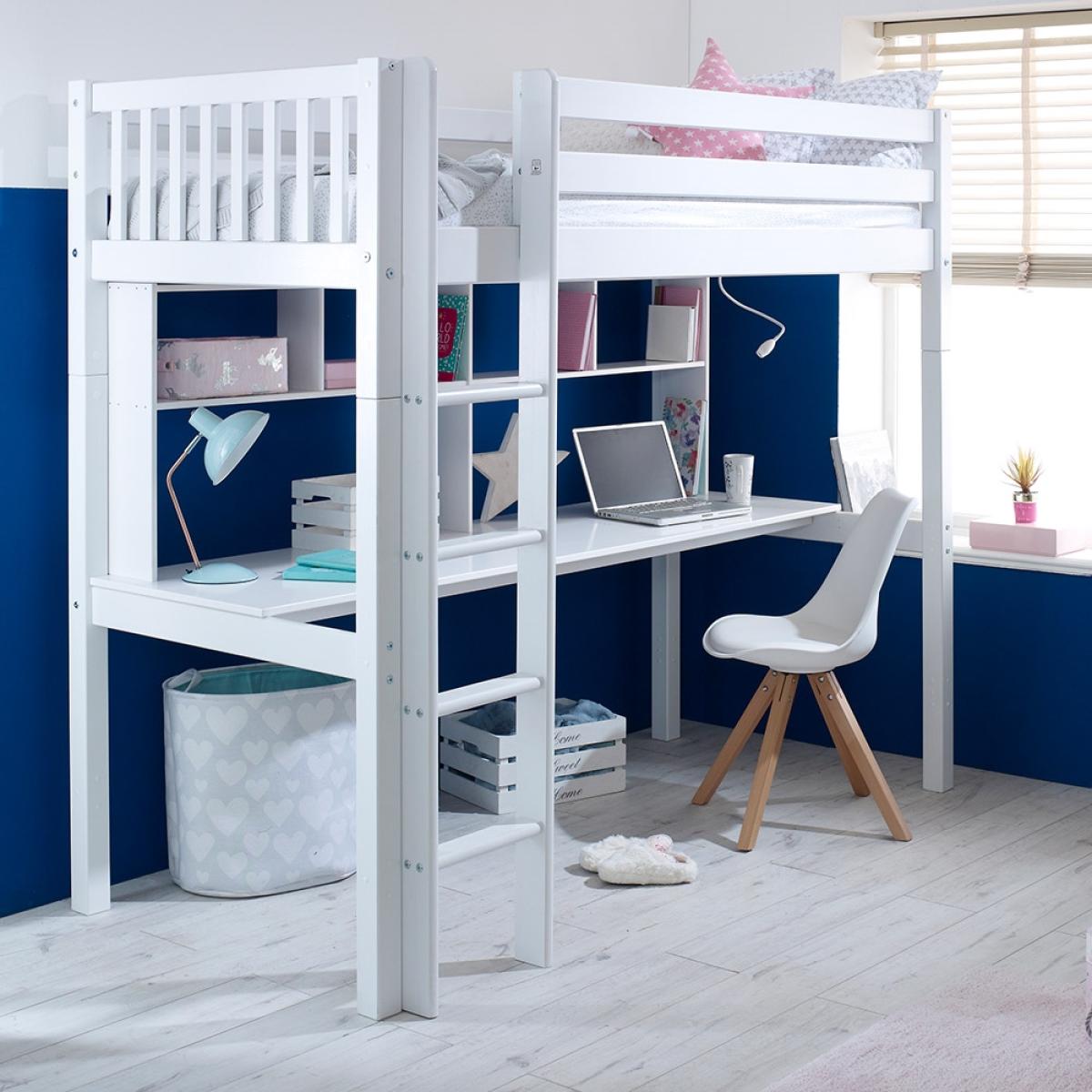 The perfect bed for any teenagers bedroom, the Nordic Kids High Sleeper 2 would be a welcome addition! Manufactured from solid pine and MDF the fresh white colour will easily coordinate with any interior style and will make the move from kiddies room to teen room that much easier! With a large desk beneath there will be plenty of space for your youngster to spread out when the time comes for that dreaded homework and the inclusion of shelves means they can keep all their bits and bobs tidy!.