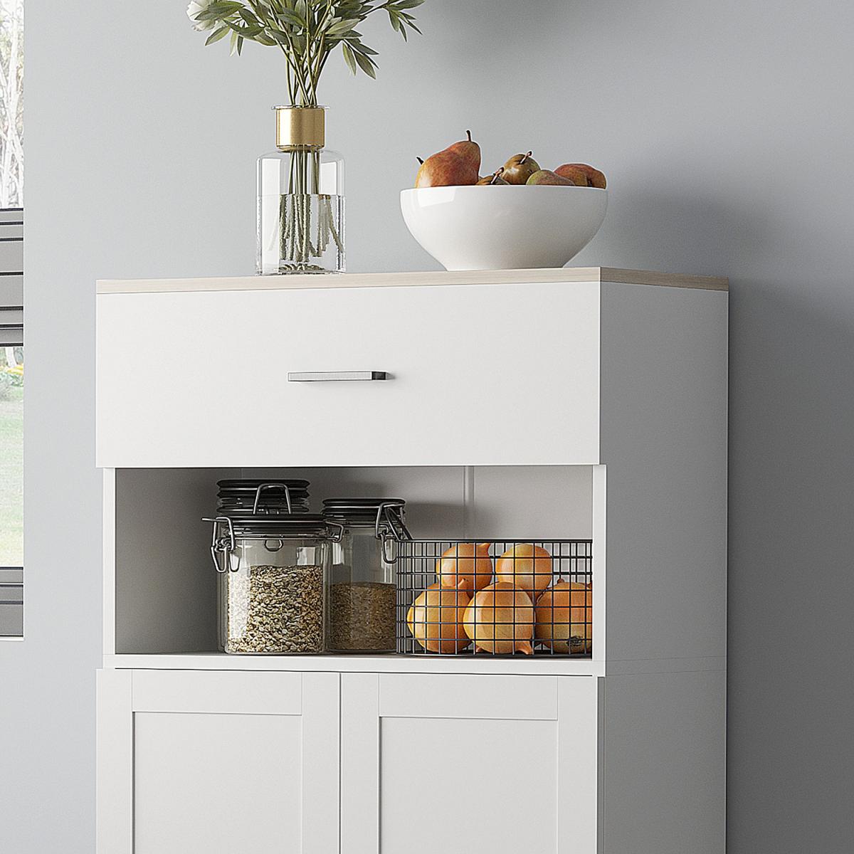 Nordic Kitchen Storage Cabinet with Drawer, Open Counter - White, Natural Wood Effect