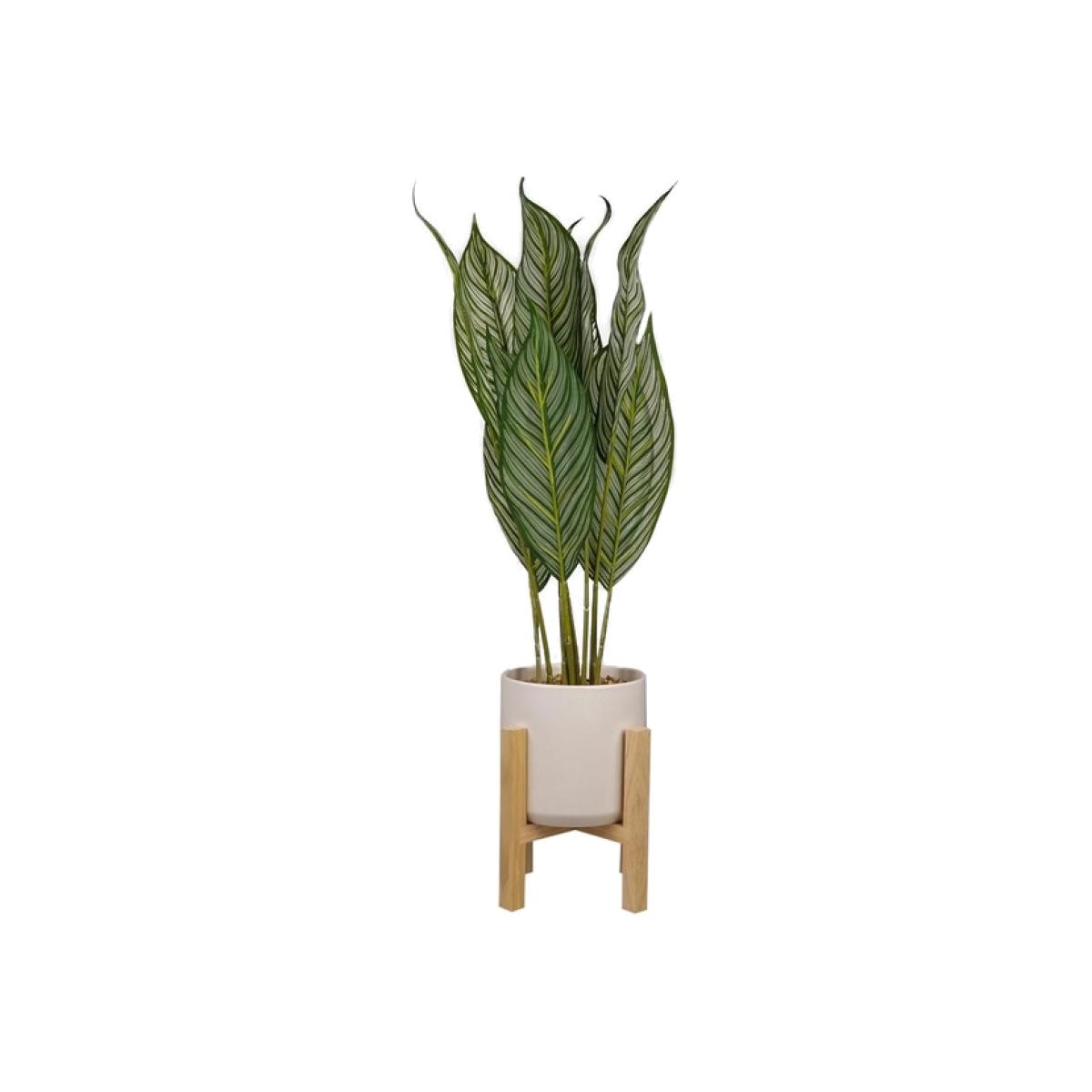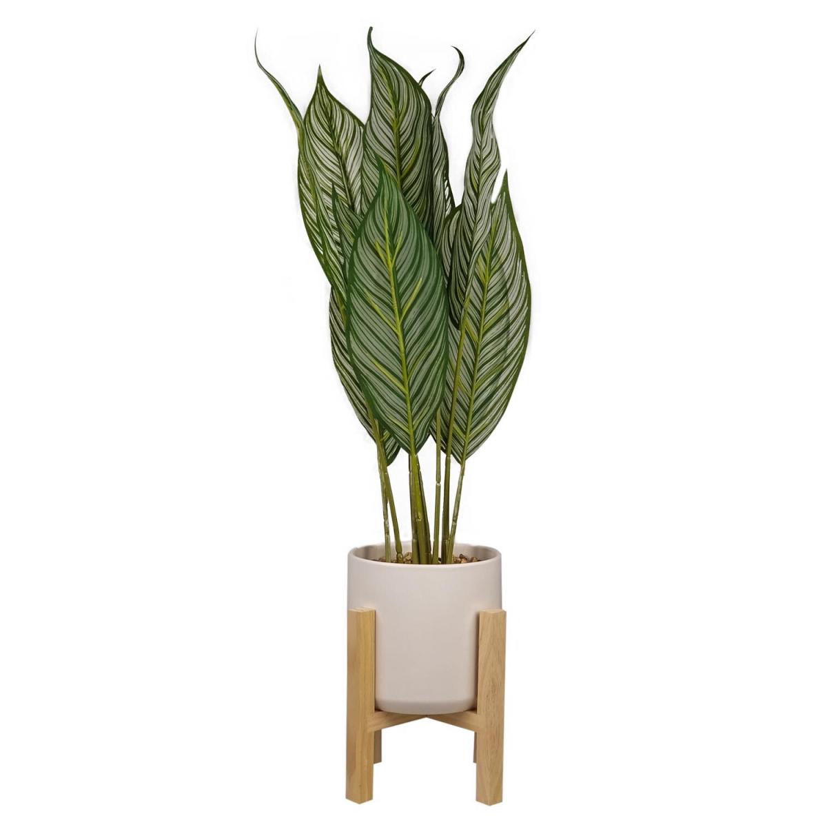 Ideal for brightening up bare spots around your home, this Faux Nordic Plant on Stand is sure to look stunning in almost any room. Inspired by Scandinavian design, this tall and elegant, realistic-looking plant will be an amazing accent for the corner of your living room, bedroom, or adding style to your hallway. The realistically designed faux leaves are easy to care for since they require no watering. Finished with a ceramic pot on a wooden stand, this is sure to impress.
