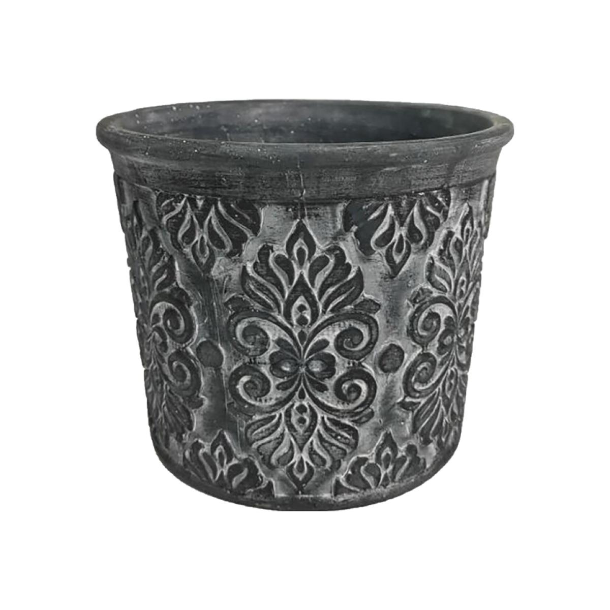 This Nordic Planter features a heavily engraved damask design over a heavy cement base. With shading to create a weathered effect, this pot is full of archaic elegance, and will bring a sense of old Nordic luxury to your home. Its perfect for combining with flowers to create a dramatic display, or for standing on its own to become a striking focal point.