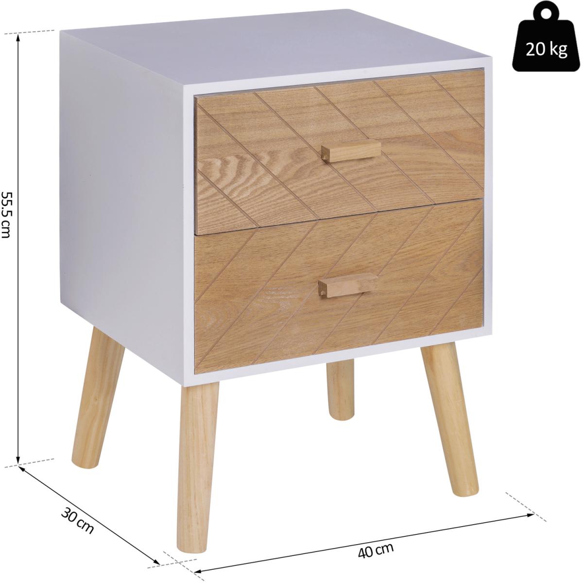 This HOMCOM 2 Drawer side table will offer up more than enough room for you to keep your closet straighten up and your clothes off the floor. With the simple and retro style design, it fits any of your indoor space. A thick wood framework is accentuated with 2 large drawers with a handle to serve your taste for function and style. Its elevated feet with anti-slip pads protect your floor and makes it more stable. Perfect storage choice for your lovely home. The retro antique style matches your bedroom, home or office perfectly. An ertical design help saves floor space. Multiple-use, perfect as a bedroom dresser, side table, or organizer for small rooms. 2 slide-out drawers with handles provide ample storage space for your garments. Large top space for photo and decorations display.