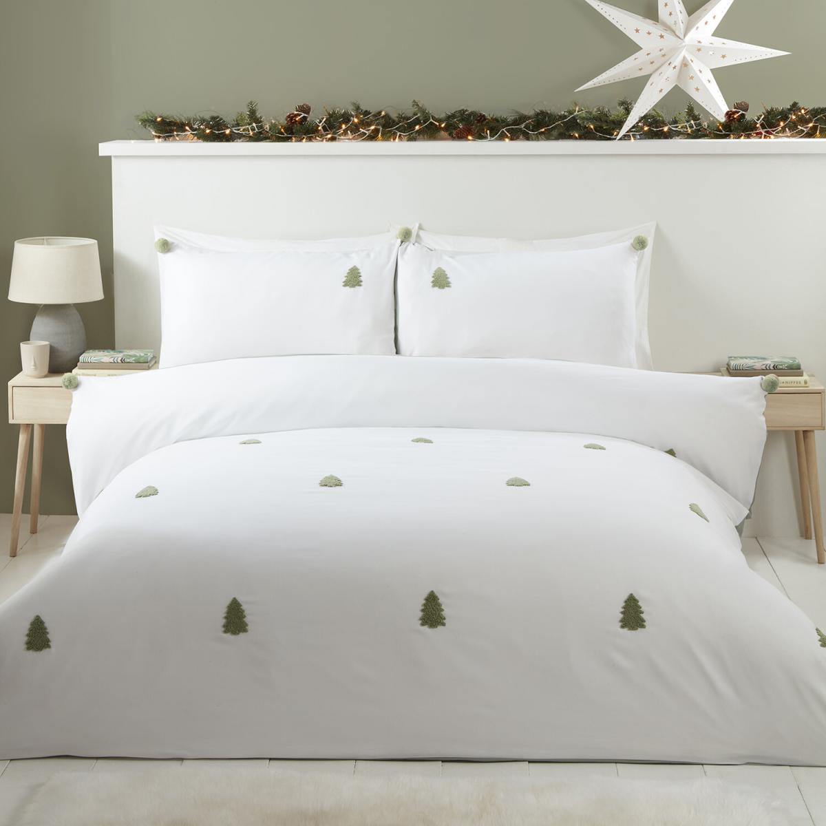 Nordic Trees Duvet Cover and Pillowcase Set - White / Single