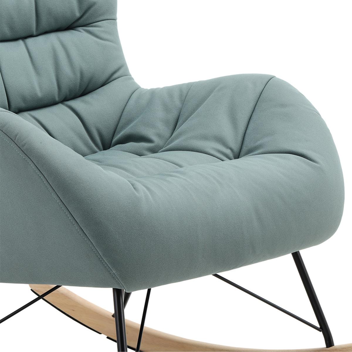 I’m a fan of the cyan rocker for its clean, Scandi-inspired silhouette and the way its soft teal-green upholstery quietly lifts a neutral scheme. The gentle curves of the wooden runners and slim metal frame make it equally at home in a minimalist living room, a mid-century revival space or a cosy bedroom reading nook. For styling, drape a contrasting wool throw over the back and perch a small cushion in a complementary shade. Position it beside a slender floor lamp and a neat side table or woven basket for books and blankets - it’s perfect for creating a relaxed corner without overwhelming the room.
