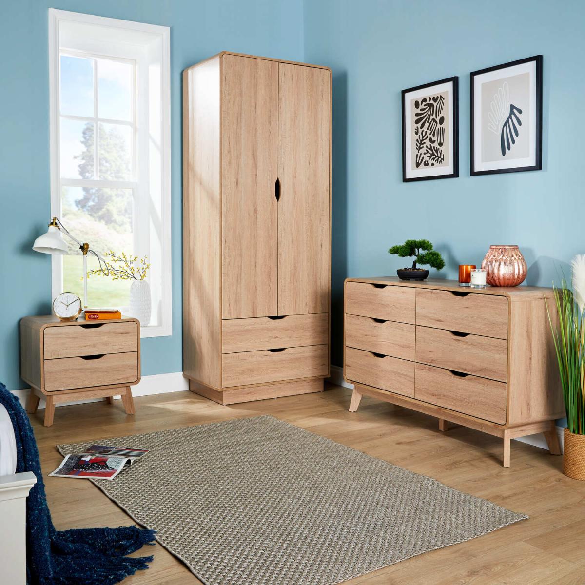 Quirky and stylish, this Nordic look wide chest is the perfect addition to your home, with 6 large storage drawers to keep your clothing, linens and blankets neatly organised and your bedroom clutter free. Each drawer front offers a cut out handle and the frame has curved edges for added style. The rustic design is expertly crafted from high quality, sturdy wood effect MDF for longevity.