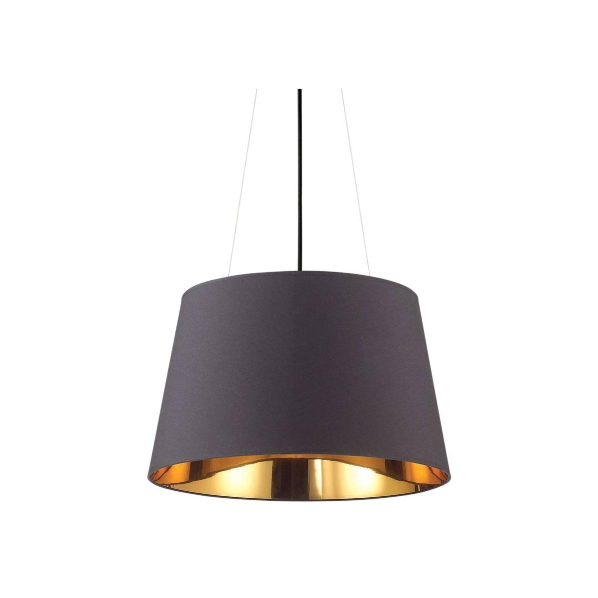 This range is complete with matching fittings to create a lighting theme throughout the room. The fittings are finished in black, with a golden PVC foil shade which is covered in black fabric. The gold inner of the shade is visible, creating a beautiful contrast in colours. The collection offers matching pendants in different sizes, as well as floor, table and wall lamps. The pendant is available in a four light and six light version. Class two.