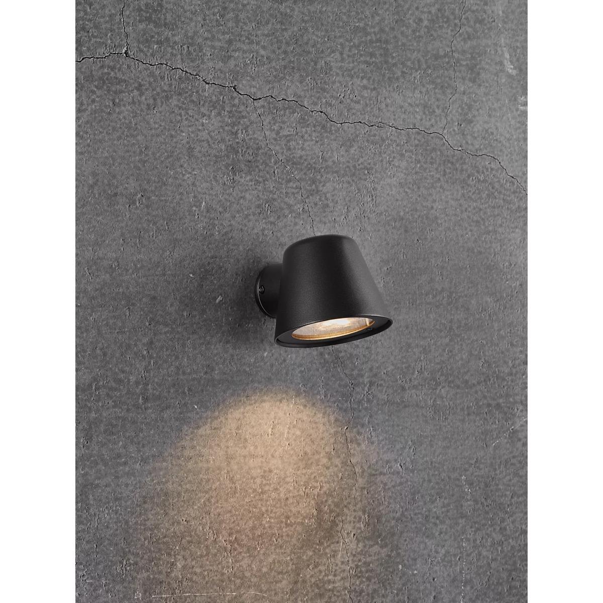 This outdoor wall light provides a good spread of light for its compact size. It's made from aluminium in a matt finish and its IP44 rating means it's tested for use in outdoor environments. It's name, Aleria, is inspired by a city on the island of Corsica with the same name.