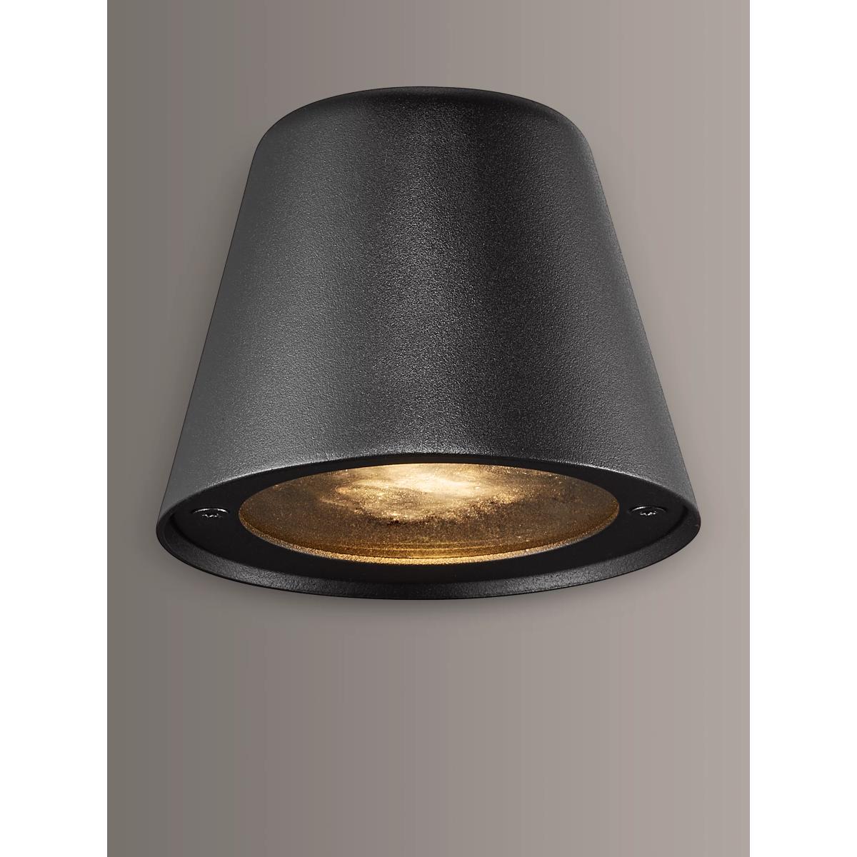 This outdoor wall light provides a good spread of light for its compact size. It's made from aluminium in a matt finish and its IP44 rating means it's tested for use in outdoor environments. It's name, Aleria, is inspired by a city on the island of Corsica with the same name.