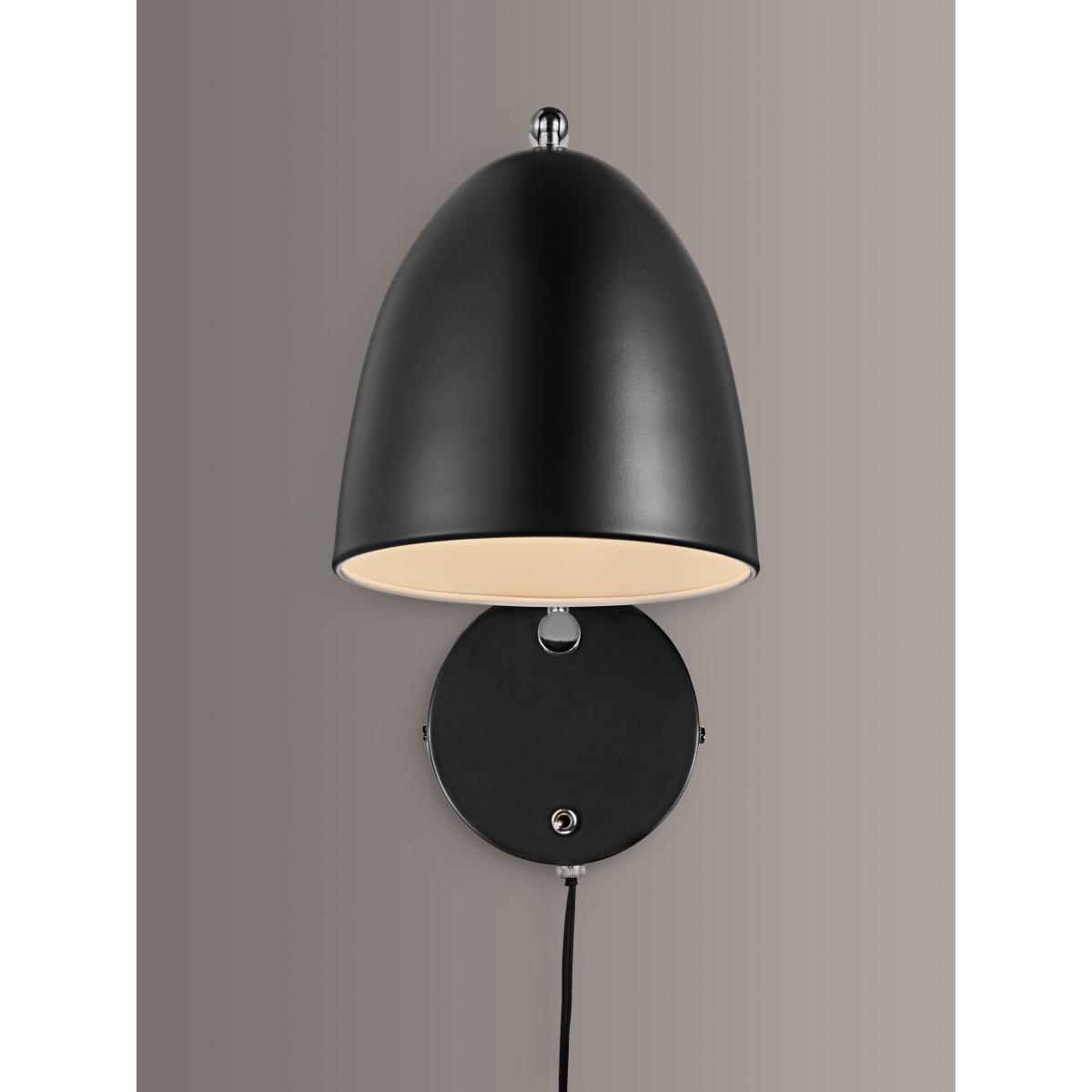This wall light has been designed to make illuminating your modern home as simple as possible. It's made from metal in shiny and matt finishes, and the metal lampshade enhances a warm and direct glow of downward light. There's an integrated on/off switch on the wall plate for easy operation and you can either use it as a plug-in wall light, or hard wire it for a neater and cable-free finish.