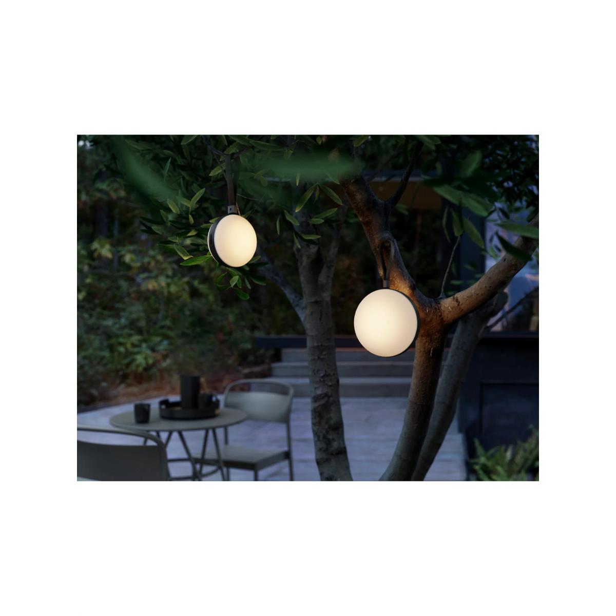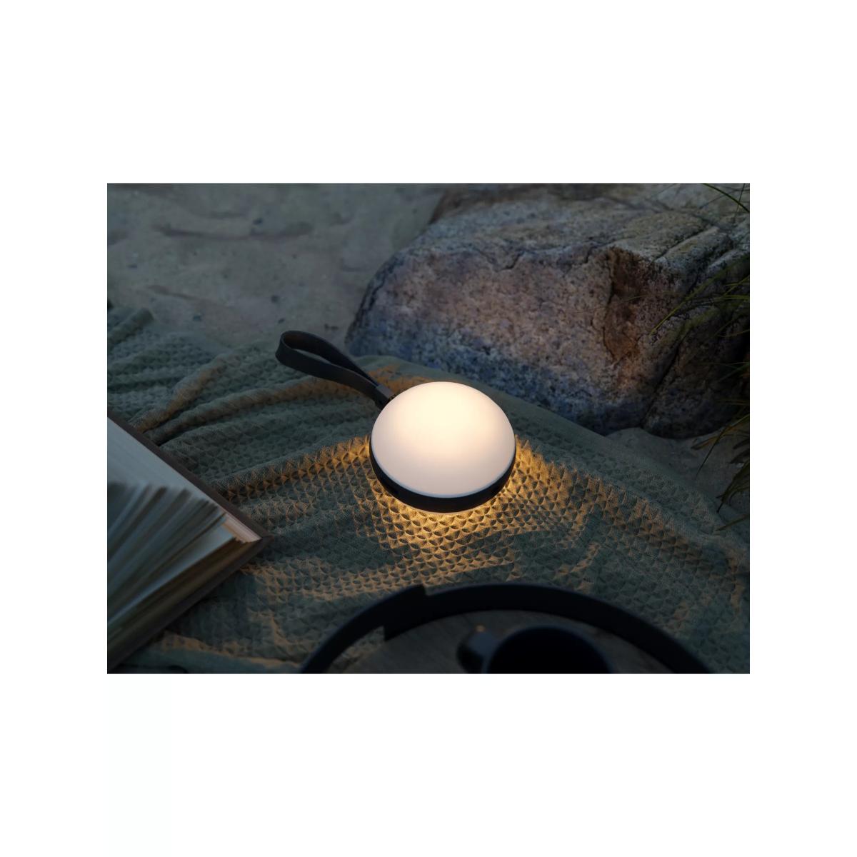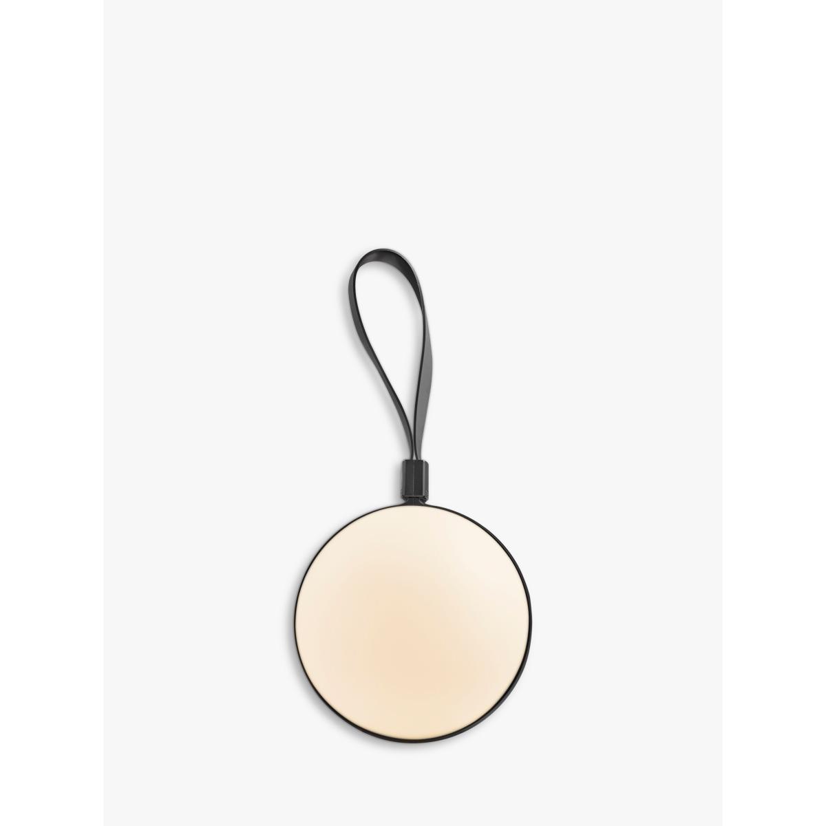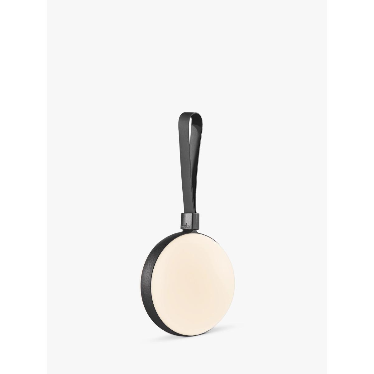 Stylish and portable outdoor light by designers Timothy Jacob Jensen and Alasdair Mc Phail for Nordlux. The Bring To-Go light has a round, illuminated surface elegantly embraced by a black rubber band that also serves as a practical handle or hanger. A gentle tap enables the Moodmaker™ functionality and dims the light in two steps. An additional tap turns the light off. Long battery life and a water-resistant surface made of recycled materials makes it ideal to bring anywhere — to the beach, park or the terrace to light up those warm summer nights with a pleasant and cosy ambience. Key features: Easy to bring with you (battery powered) Made from recycled materials Just tap to turn on/off 5-year LED guarantee Long battery life USB charging cable included Battery charge: at 200 lumens — 6 hours, 80 lumens — 8 hours, 30 lumens — 24 hours