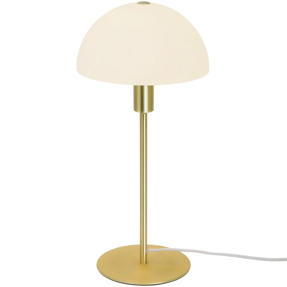 With references to minimalist and timeless Scandinavian design, Ellen fits beautifully into most interior designs. The exclusive, matt opal glass shade creates an elegant contrast to the lightweight frame and contributes visual volume and a wide field of light. Ellen is the perfect table lamp to brighten up your home with a soft and pleasant light. The glass in this lamp is mouth-blown and has been individually handcrafted. Due to this unique process, air bubbles may appear in the glass, and the thickness of the glass can also vary. Exclusive and classic style. Switch on Cable. Dimensions: Overall size H40, W20cm. Diameter 20cm. Shade size H10, D10cm. Diameter of base 15cm. Cord length 150m. Bulb Information: Bulbs required 1 x golfball E14 small edison screw LED bulb(s)(not included). Recommended maximum wattage: 40 watts. LED bulb only. General Information: Shade colour: white. Base colour: brass. Shade material: metal and glass. Base material: metal. In-line switch. IP rating 20. Minimal assembly. Product is mains powered plug in. This lighting product is a class 2 fitting. Manufacturer's 2 year guarantee.