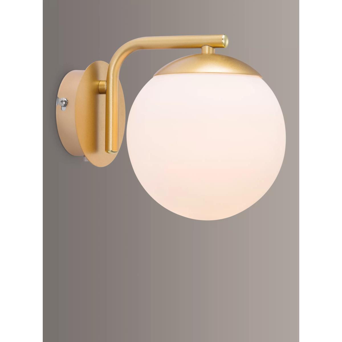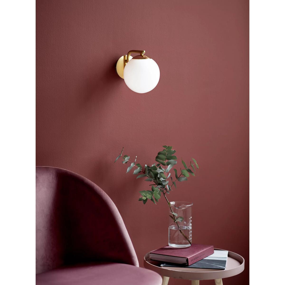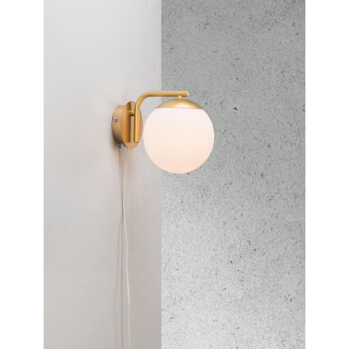 The brass-finished metal of this elegant wall light gives it a subtle, Deco-inspired look. It features an opal white glass shade that will enhance a warm and diffused glow of light. Install it on either side of your bed frame for a decorative and functional lighting solution.