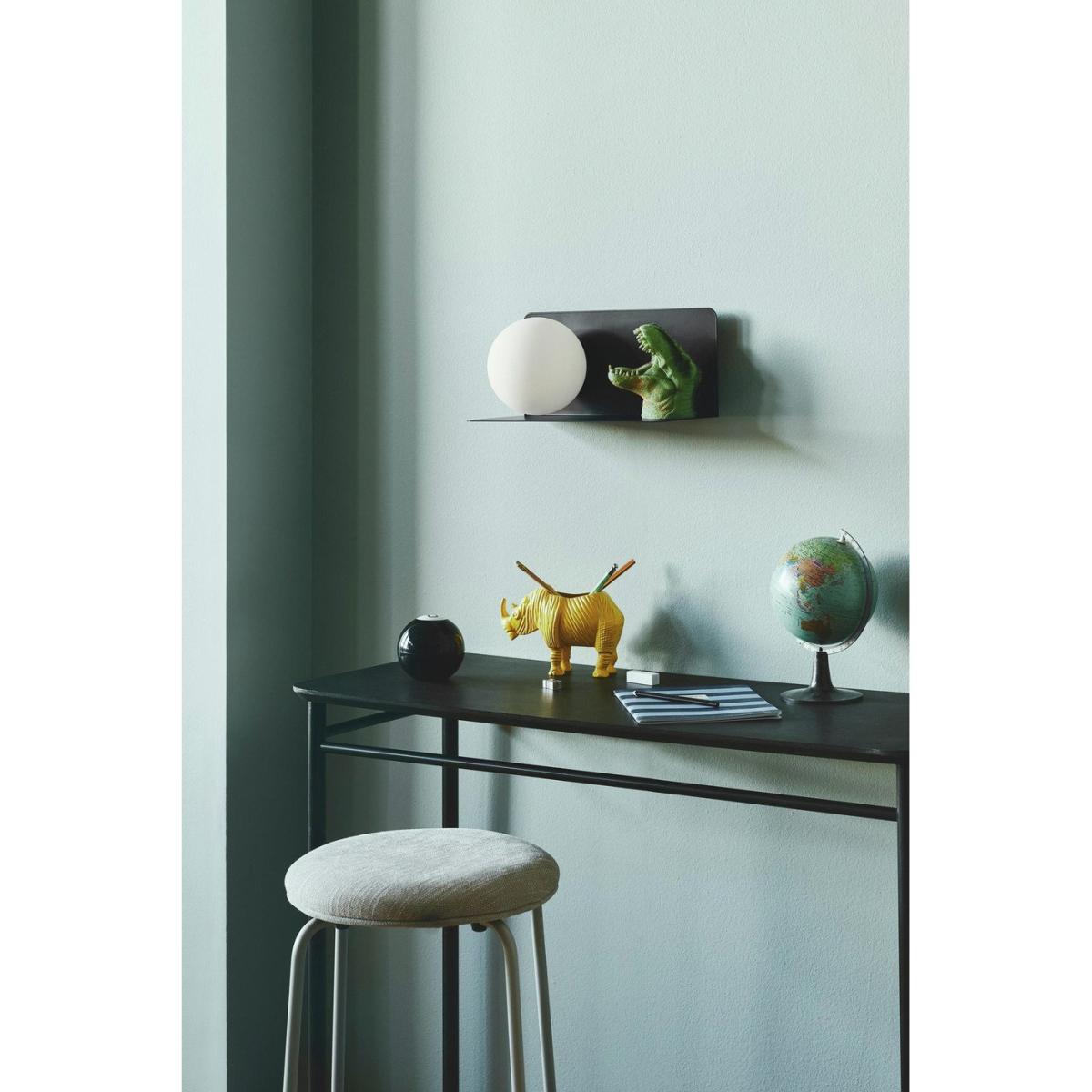 Lilibeth is a stylish lamp and shelf in one elegant design—ideal beside the bed or in the hallway for holding essentials like your phone, book, or keys. The opal white glass dome provides soft, diffused light, perfect for creating a calm atmosphere, even in children's rooms. The mouth-blown glass is individually handcrafted, so small air bubbles and variations in thickness may occur. These natural details give the lamp its unique charm and vivid character. Wall light and shelf in one. The opal glass shade provides a soft, diffused light. Dimensions: Size H16, W35, Diameter 15cm. Non-adjustable drop. Bulb Information: Bulbs required 1 x golfball LED (not included). Recommended maximum wattage: 25 watts. LED bulb only. General Information: Material: metal. IP rating 20. Not suitable for bathroom use. Weight: 1.55kg.